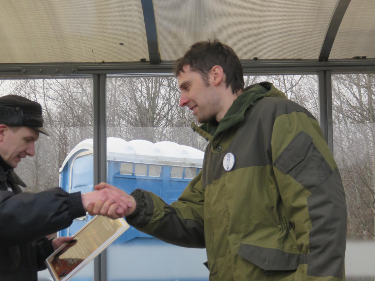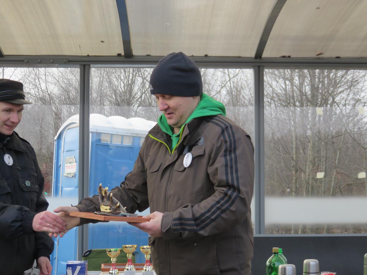 Во время регистрации на пострелушки участники мероприятий коллектива за год (охоты и пострелушки) собрали все свои значки (выдаются на каждом мероприятии) в один большой мешок. Мешок изрядно потрясли, и ребенок одного из членов коллектива достал поочередно три значка. Таким образом, 2 малых приза по 5000 рублей и большой приз 10000 рублей нашли своих владельцев. Кстати, если в прошлом году это были люди, посетившие большее количество охот, то в этом – победители обладали небольшим количеством значков. Один из победителей не является членом коллектива охотников HUNTER.SPB.