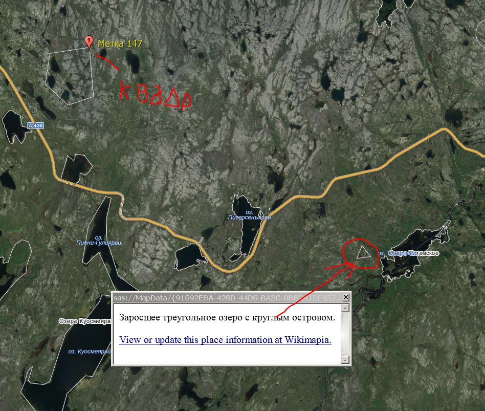 Заинтересовало место тем что на космоснимке "куртинка низкорослого ивняка" очень удачно вписывается в квадрат с виртуальным размером примерно 5х5м.А чем тебя заинтересовало это место вообще? Что показалось странным?