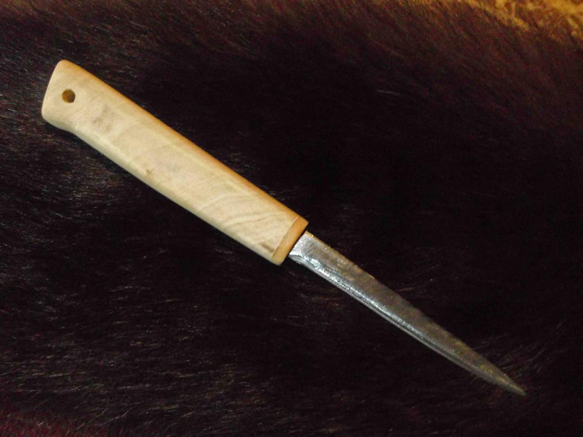 Селянин, Вадим.Представь себе что ты расколол вдоль кость передней ноги лося и сделал из нее нож.Это будет большой якутский нож.Если взял ногу оленя или изюбря то средний и ногу козы то малый.Далее .Нашли руду и научились работать с ней.Но еще не умели цементировать.Просто отковали форму сделаную природой --придуманую господом богом. Далее научились цементировать и была проблмемма с точением.Зацементировали и закалили наружный режущий слой.Точится любой бякой вплоть до шарканья об камень или ствол. Ну а все что делают из современных сталей.Это просто породия .Форма таже.Но точить трудно и нет эффекта Белкина зуба
