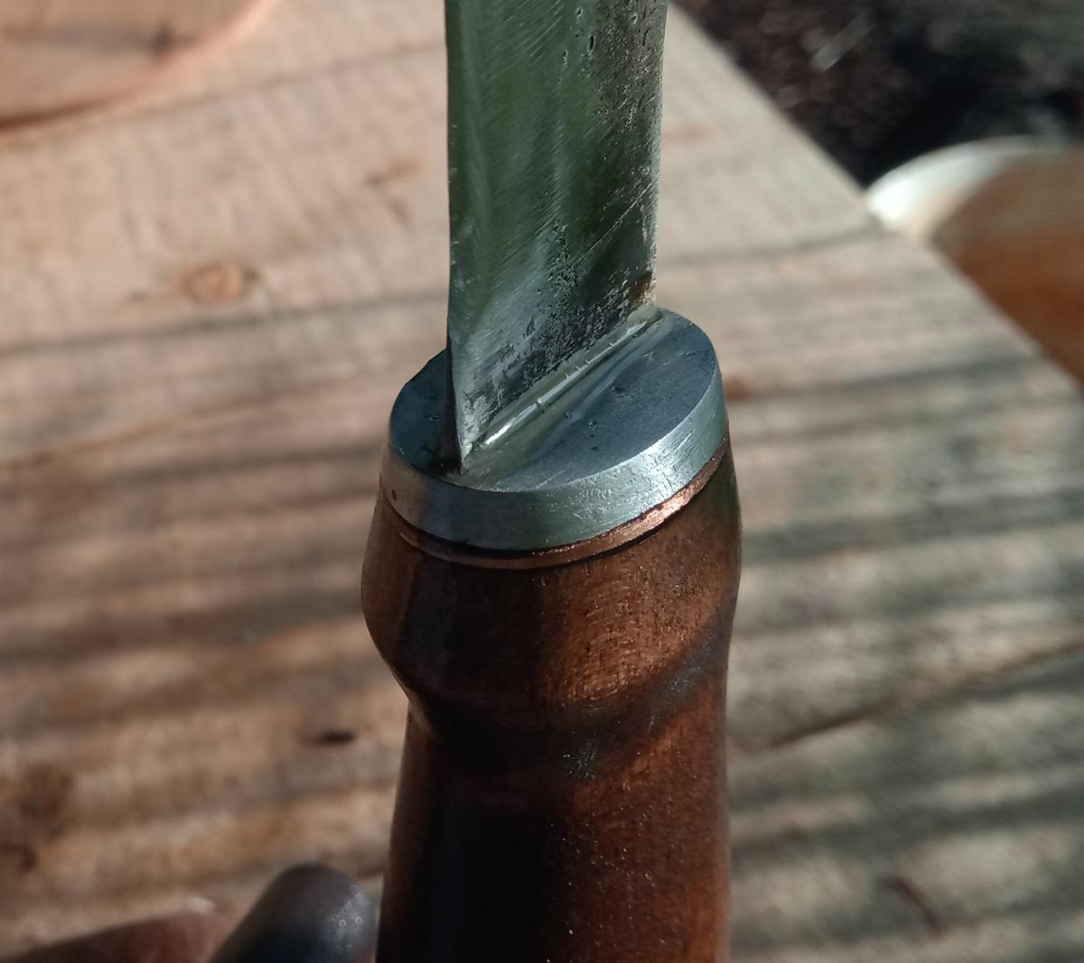 Если хвостовик очень короткий, то лучше нарастить его жестким креплением, чтобы ручка не качалась. Это крепление заодно может упираться в гарду и держать ее.