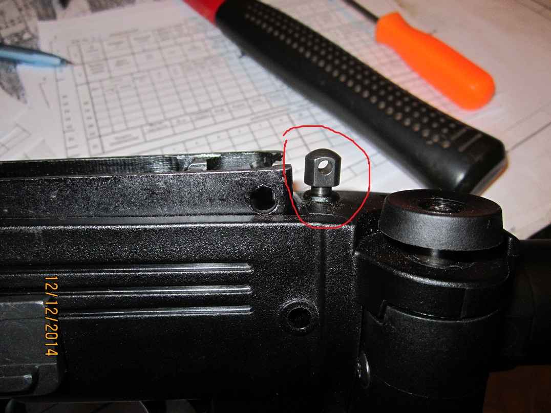 Пришлось снять одну из антабок, т.к. мешала встать крышке ствольной коробки. Обратно ставить не стал, т.к. крышку время от времени надо снимать, а антабок тут дофига и больше.