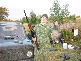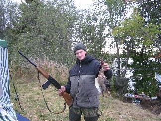 .собаки нет и поэтому ходовая охота сильно выматывает.в общем сидим вечером опаливаю ощипанную добычу,вдруг летит на нас косяк(не наркотовский)а самый что не на есть гусиный(для перелета было рановато 10,09).летит нагло так на высоте метров 30 и крыльями машут.ну я по началу растерялся от наглости такой,но потом взял себя в руки и ружуе:2: .один раз пальнул, гусь упал прямо к костру.такого сервиса с их стороны я признаться и неожидал.прям как у барона мюнхгаузена "утка!с яблоками! да она еще и соусом по дороге облилась!?!как мило с ее стороны".