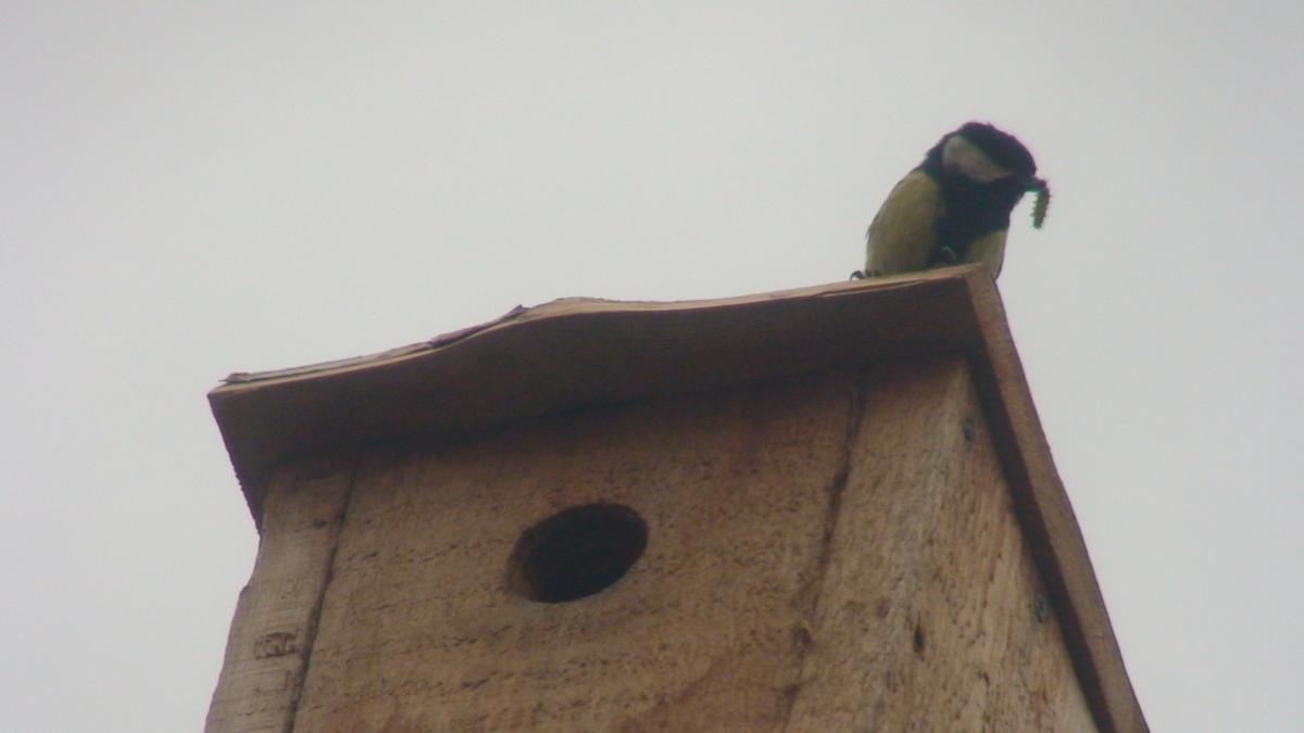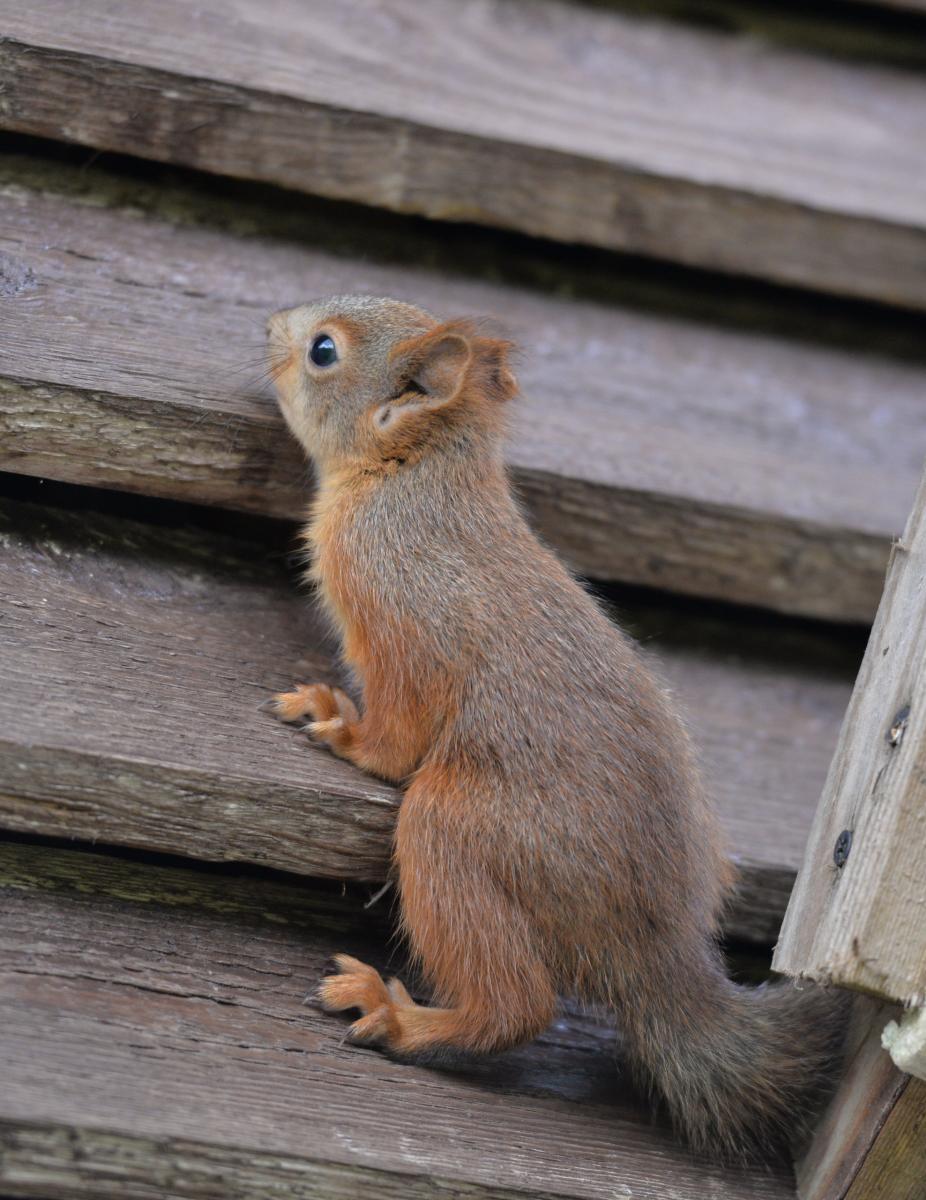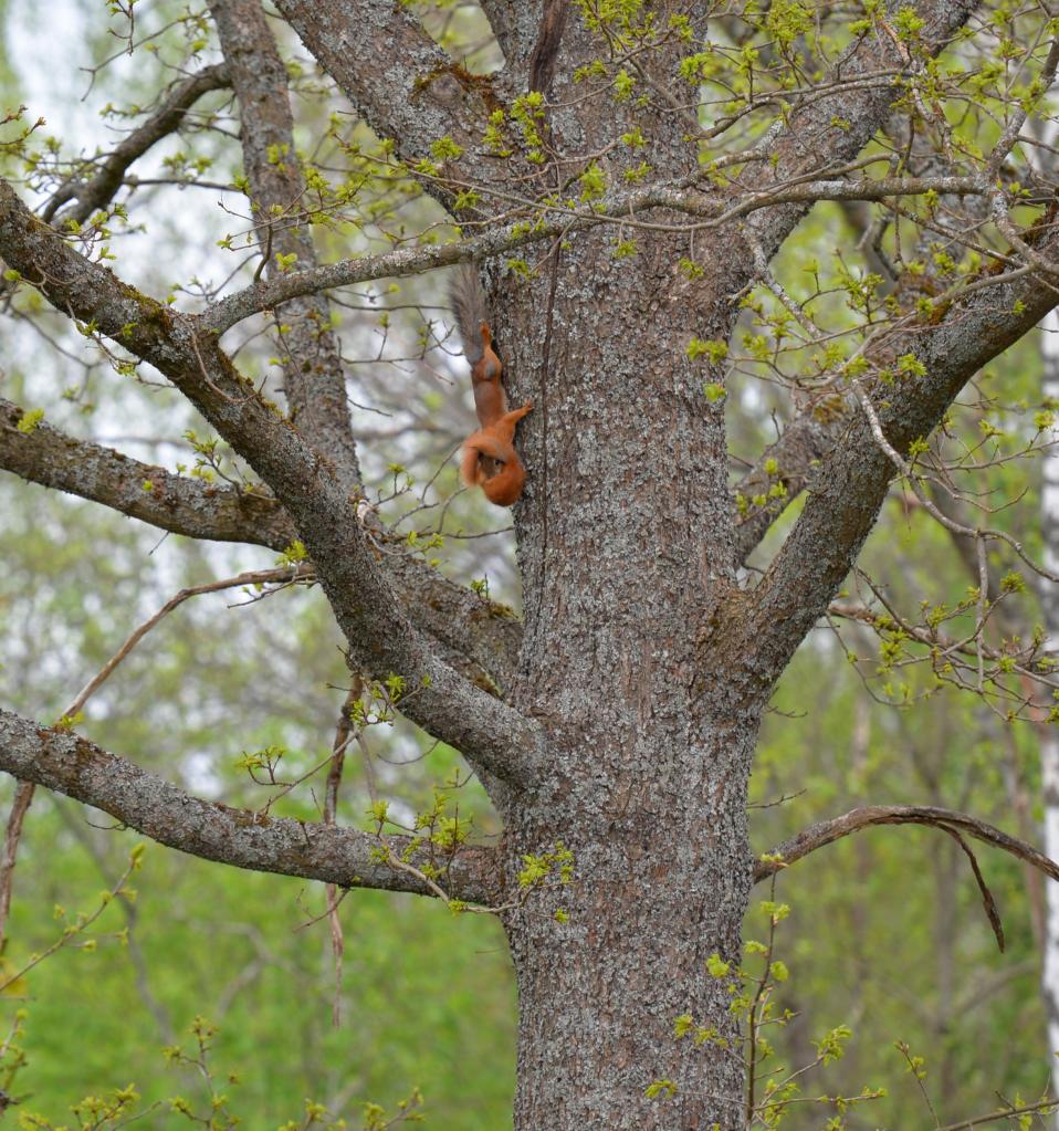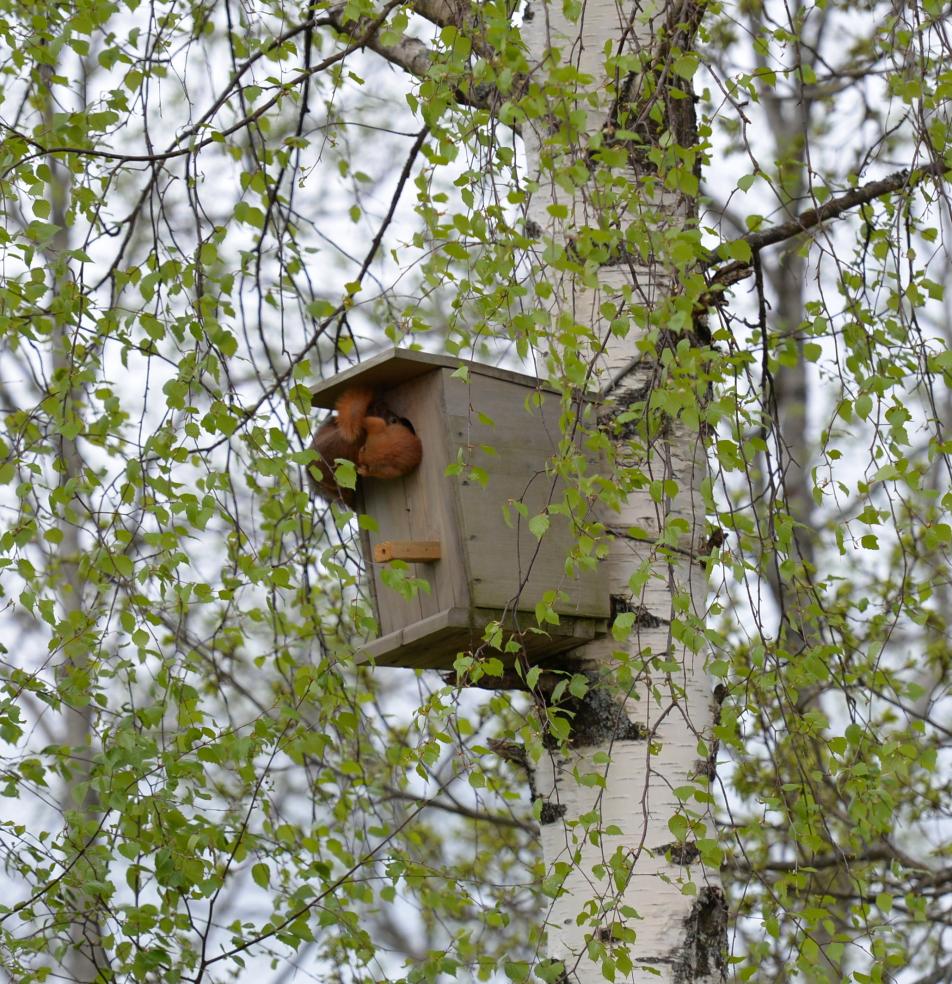 В конце апреля в скворечник заселилась молодая белка.