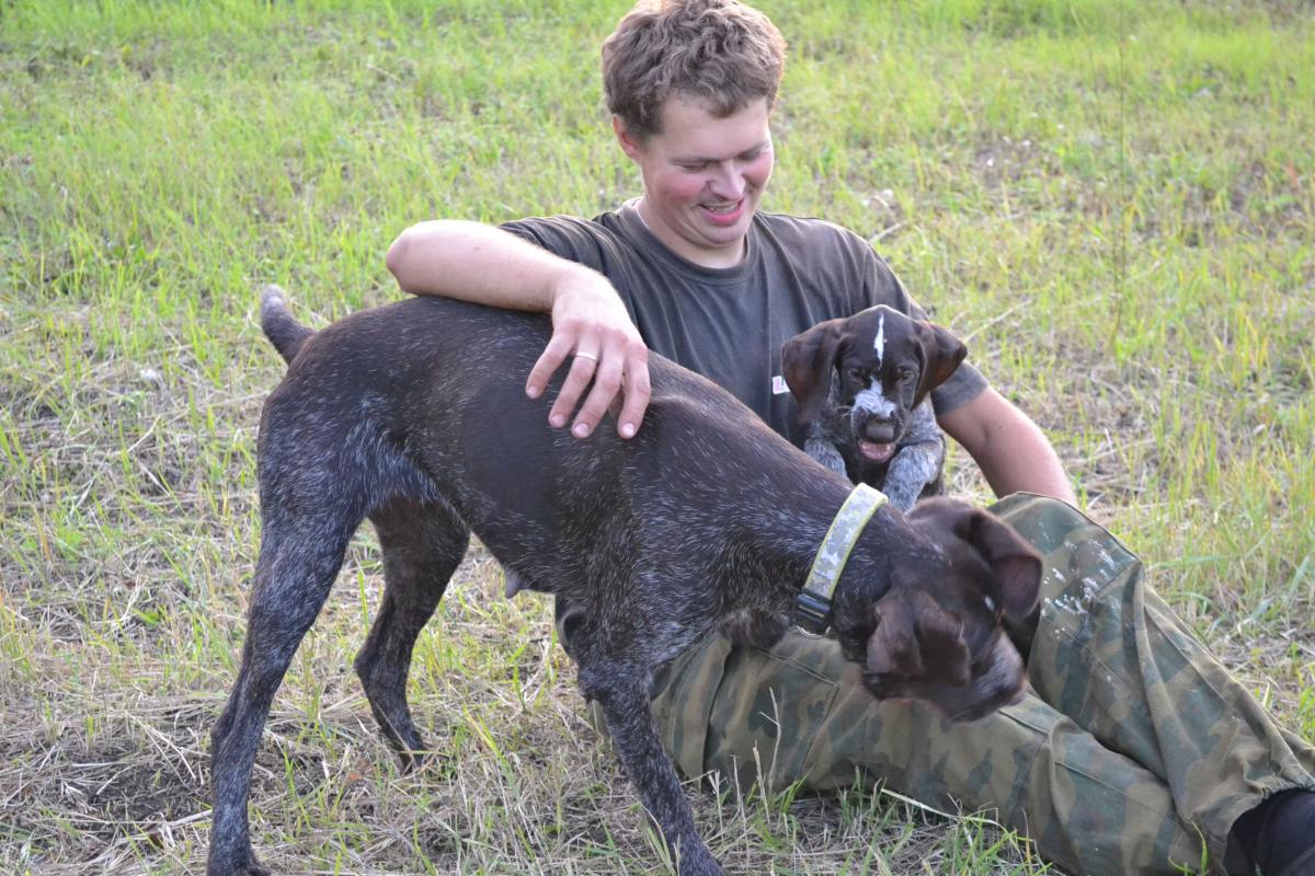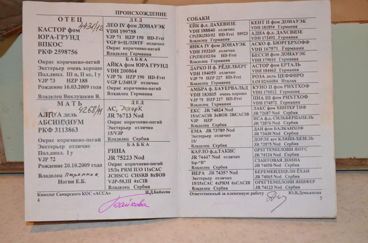 от отец: ASTOR v.d. BODNSHCTIFTEN, 2-II б., 2-III б, II утка, III утка, I к.с., экстерьер отлично, Чемпион Московской областной выставки охотничьих собак 2007, 2009