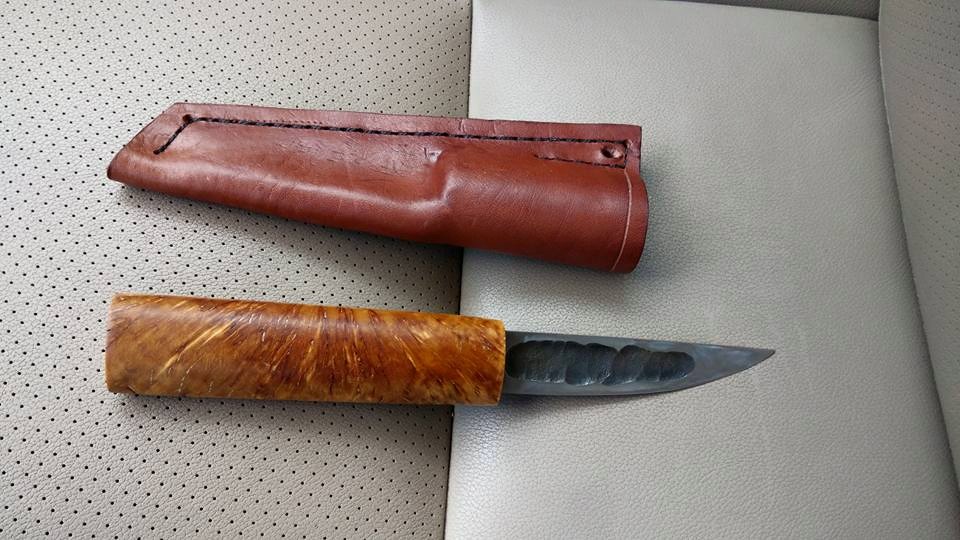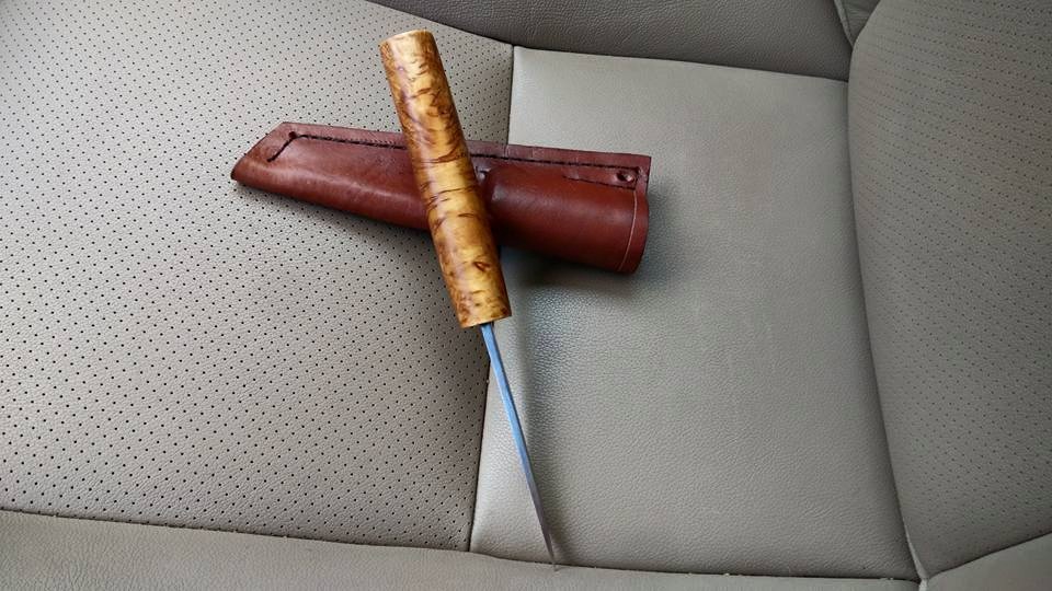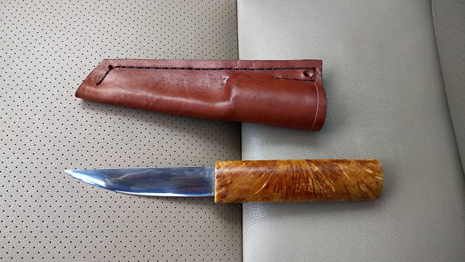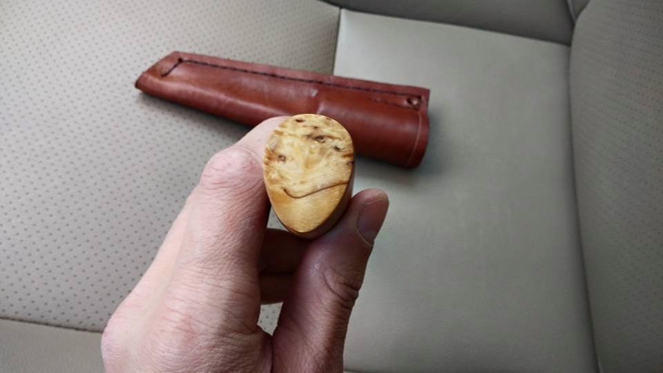 Рукоять - карельская береза, пропитана, сверху обработана карнаубским воском.