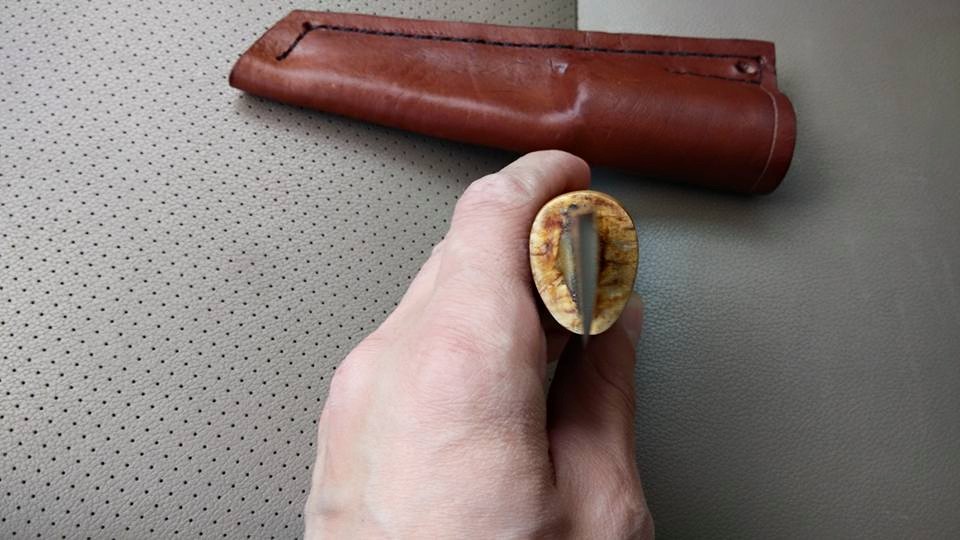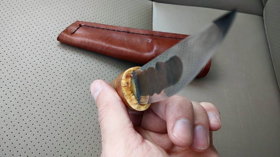 Ножны - кожа РД, 4мм, пропитана воском. Заточен вручную.