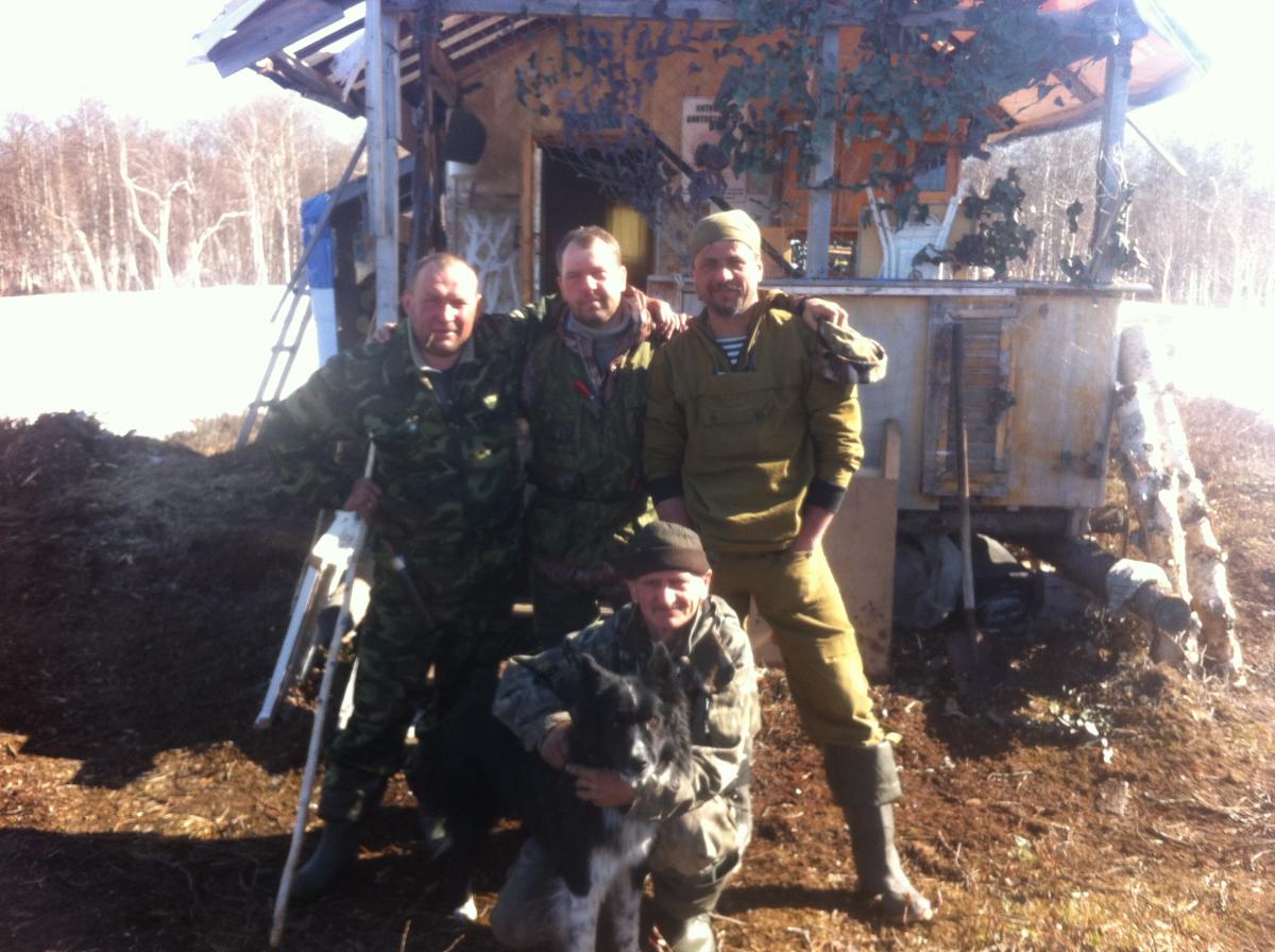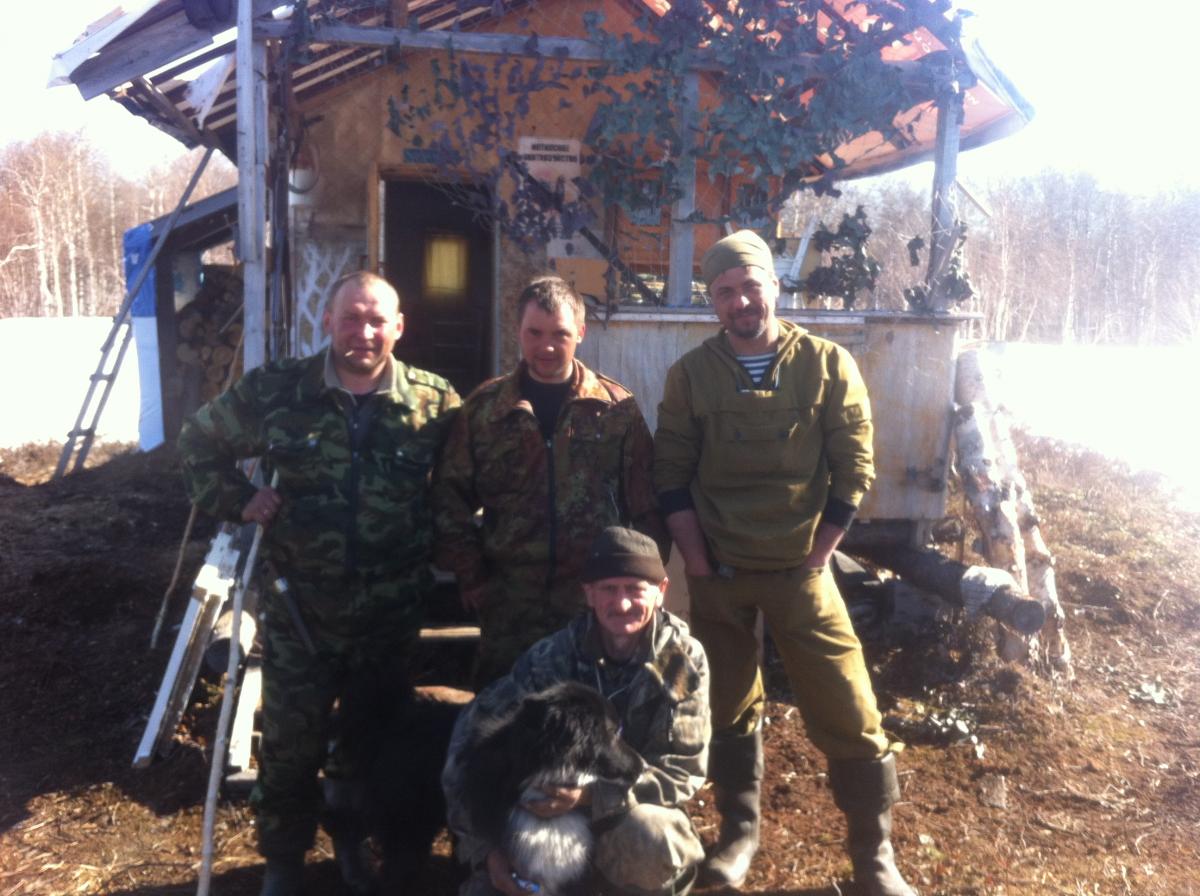 Представлю команду: Капитан, личность известная, Анатолий Александрович Мингалёв, летчик, хоть и на пенсии, но не бывший- https://www.youtube.com/watch?v=djI7GsSooYM ,http://www.youtube.com/watch?v=Wk4K_sIvxe8. Его сын Слава, им принадлежит изба в которую выдвинулись, приятель сына Ниль , пес Тополь, мой братуха Артур и ваш покорный... День старта, погрузка шмурдяка на каракат, а сами пешком 18км в тундру ,до избы. Весной идти не сложно, лед на озерах подняло, он же под мягким покровом вскрывшегося мха , иногда только встречаются снежные наддувы, которые укрепил недавний снегопад в пол метра за ночь, и в которых проваливаешься иногда до "упора", а иногда он неплохо держал на поверхности. Путь лежал через ручей Лебединый и речку Малую Инту. Переправа через Лебединый, после 3 часов хода, далась на удивление легко и мы с разыгравшимся аппетитом довольно скоро обедали на другом берегу, а разлившаяся Малая сдалась только на следующий день. Её течение было достаточно сильным, каракат наскочил на высокий пень и нам с трудом при помощи жака, по пояс в воде удалось сорвать его с "якоря", ценой оборванных сателлитов заднего моста. Выбравшись обратно на берег, установили палатку , переоделись в сухое, зажгли примус который вместе с боевыми 100гр.и ужином согрел нас в нашем жилище. Сладкий сон, а на утро кто на охоту, а кто занялся ремонтом транспортного средства. К двум часам дня всё было готово и мы повторили попытку покорить Малую. Крепили фал несколько раз, от дерева к дереву и короткими отрезами таким образом боролись с течением не давая ему сносить каракат и часа через два мы были на нужном берегу. Такой сложной переправа через речку была впервые, наверно специально для меня так вышло. До избы оставалось км. 8. Наш капитан вел "аппарат" , выбирая наиболее ровный путь без снежных наддувов и крутых холмов, а мы прямой. К 8 вечера, пришли к цели. Хозяин тайги не успел снова побывать в гостях ,хотя небольшой беспорядок был оставлен путниками с человеческим обликом, с которым мы быстро справились, в печке трещали дрова, её жар слегка разогнал комаров, а нас ,в купе с горячительным и макаронами с тушенкой, отправил на боковую , в смысле: жар с макаронами, тушенкой и горячительным, а мы потом, на боковую. В 4 утра подъём, завтрак и все ,прихватив профиля и необходимый инвентарь, разошлись по полюбившимся местам из прошлых охот. Мне пришлось составить компанию Санычу, пока, так как капризный я товарищ. Погода была, какой не припомнят, две недели солнце и +18-20 днем. Расставили профиля, заняли позиции, было несколько налетов но гусь отворачивал и я решил сменить дислокацию, присмотрев неподалёку у кустов берёзы подобие траншеи из кочек. Особенных скрадов там не строят, из за обилия снега используя зимний маскхалат. Предупредить про ручей меня забыли, а может не забыли, и я принял крещение провалившись под лед в северном иоле, выбравшись на берег, обнаружил отсутствие ружья, нырнул второй раз, достал. Фотокамеру тоже окрестил, надеюсь всё же не критично и фотографии будут восстановлены. Ну и не мог я нарушить православную традицию . Солнце беспощадно съедало снег со льдом .Мы решили пообедать и переходя ручей ,где уже делали это несколько раз, нырнул я в третий. Теперь на карте знаю где есть Аркадий-иоль. Хотя в нем купались в прошлые годы по нескольку раз все из команды , но в честь гостя.., получил безымянный имя. Это б