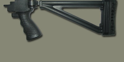 Я думаю наверно надо разобрать этот узел и подложить под пружину пластину(фигурную),т.е. при открывании ты нажимаеш ее и приклад откидивается,я бы более точно посоветовал если бы держал его в руках,но за не имением этого попробуй сфоткать данный узел крупным планом.
