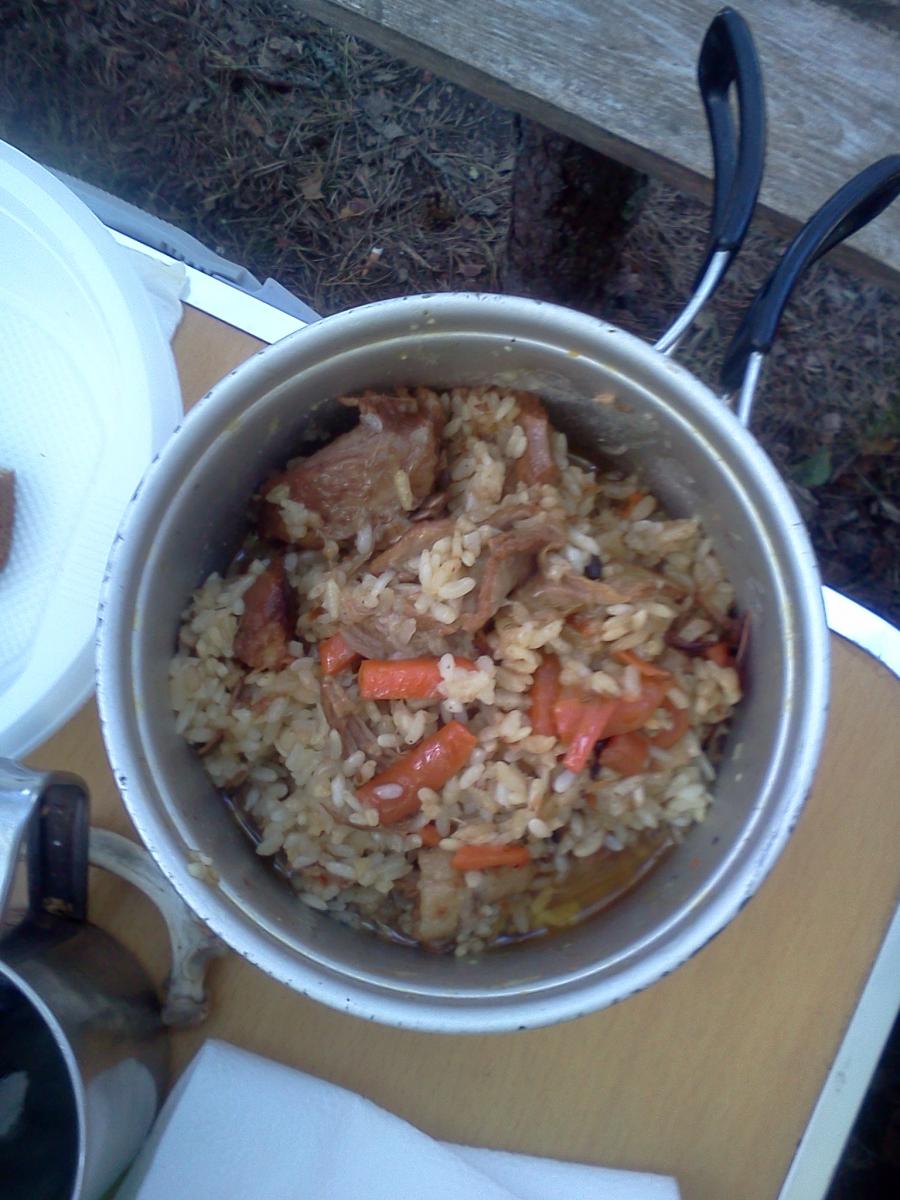 Отдельные дифирамбы всем поварам: заварные чаи, яичница с колбасками, гречневая каша, щи с бараниной, уха, шулеп или шулюм, плов, салаты, и даже овощи с колбасой были вкусно порезаны...