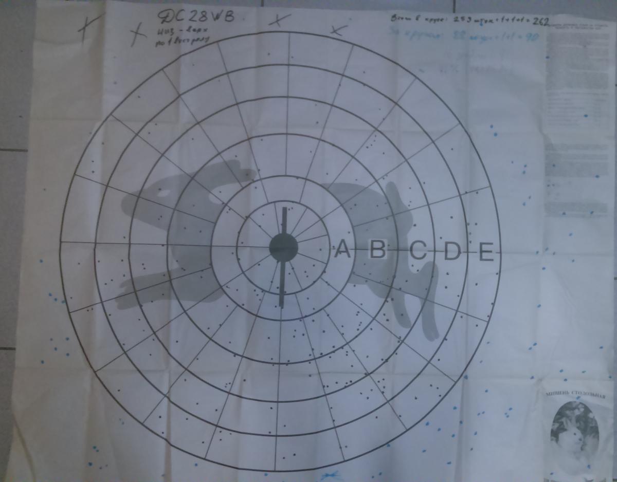 Поясняю, что стрелок покаялся - брал "под обрез" и, поэтому, занизил. Предложил перестрелять, но я отказался: раз договорились "честно", то - "честно"...