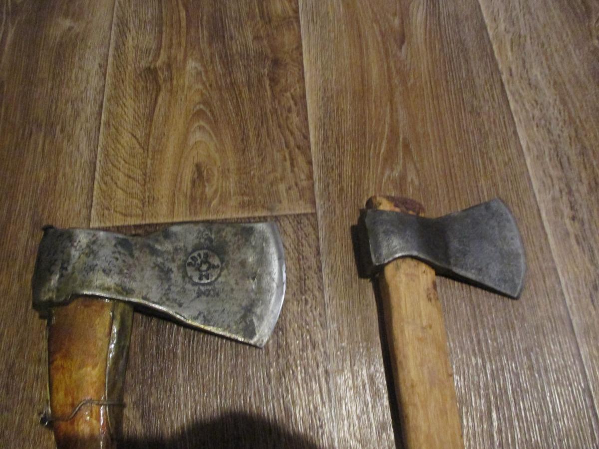Очень советую выбирать в переделку топоры с мощной проушиной,плоской и широкой.Ширина топора в обухе не благо,точно.Остальные размеры -чем больше тем лучше.Мичиган,Веллота,хусварна и сравните с фит оленем-там топорищу держатся не за что.Но топоры хорошего строя и переделывать их можно,тщательно насаживая.Разные проушины-наглядно.Долговечность топора зависит от проушины-смотри мичиган- ее подготовки перед насадкой.IMG_3771.jpgIMG_3773.jpgНа мичигане лак блестит,хусварна пропитана и пропитка смоется на осенней охоте-дожди,год ужасный и будет переделана рукоять-выше снимок.