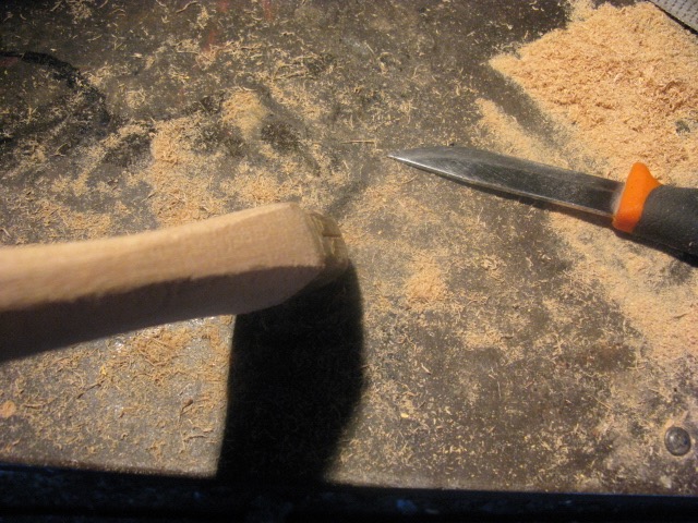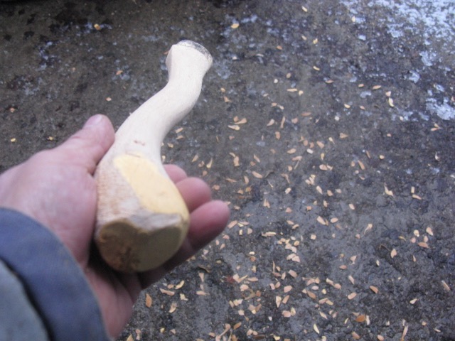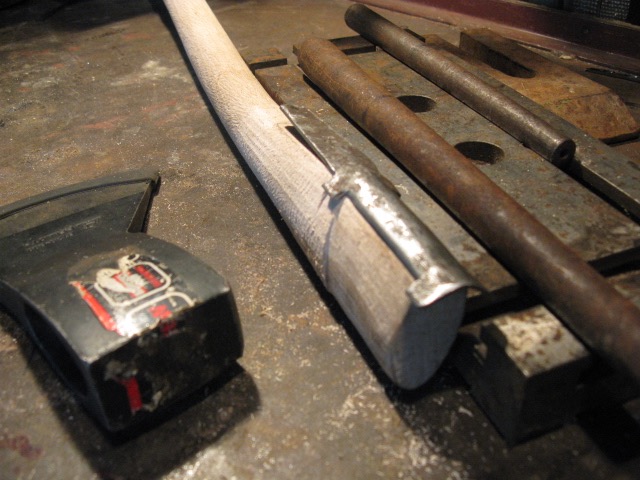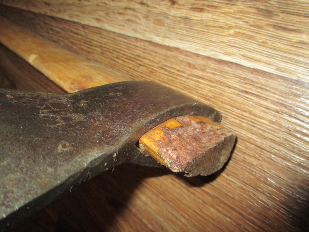 Вот, мысли у практиков :) сходятся. Нынче достал его и сразу мысль отпилить этот огрызок, все одно подбивать некуда, он же весь искрошенный, а еще порубить и вовсе смех будет......а сидит и так плотно без подбивки. Отпилю я его...Просто хотел показать что это якобы навершие оставленное для дальнейшей подбивки после работ на подбивку то уже и не годится...