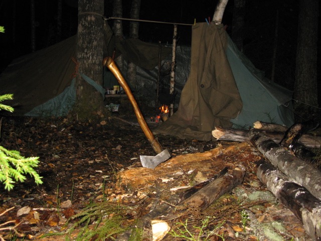 Верхняя и нижняя пластина на ходовой Беллоте.IMG_3742.jpgIMG_3747.jpgАрхив.Видны шаблонные (конические) прутки и монтажный столик.Не уберете лишний вес топорища-получите кувалду,а не охотничий топор.И не спешите топор обрезать-см полноразмерную валочную Вачу,не стремитесь к форме скандинавских топоров-они не очень удобны.Пластины делают топор вечным...IMG_2907.jpgВы позволете себе истратить на изготовление топора 8 рабочих часов,для любого изготовителя это не слыханная роскошь.По сути у вас будет авторский топор и автор вы сам,просто все нужно делать правильно.IMG_3661.jpgIMG_3937.jpgНаклейки предостерегающие вас о крестьянской рубке на первом снимке на голове топора,они разные на топорах разных фирм.На Хусварне есть наклейка запрещающая втыкать в полено и пробовать расколоть его боковым нажатием на топорище.Стихия охотничьего топора рубка поперек и рубка сучков.Хуже он колет дрова-из за веса-ходовой -легок,из за формы лезвия-тонкое с длинной рабочей частью.Физика инструмента.Что такое вечный топор.Ну сколько деревьев за год срубает охотник любитель?Скажу за себя-сутки в лесу с отрицательными температурами-одно дерево толщиной от 10 до 15 см.В балаганном стационарном лагере.Переночевать в лесу у нодьи-одно дерево три бревна по 30 см на 2 м.Умножайте на количество ваших охот.Профи охотники в лесу у сосны не любят ночевать,но случается-заночевать на следу например,или в радиальном выходе,или не получилось до избы дойти.Охотничий топор -это личный,легкий и производительный топор с длинной ручкой,и тут его выход.Вечный топор-при таком уровне эксплуатации ему может быть понадобится переклинивание раз в 10 лет,а может и не понадобится совсем.Но точно одно топорище на весь срок службы топора.Железки не дают вывести в утиль топорище,даже если он зашатался слегка,а вам недосуг его было подправить.Сделал брату топор из сырой деревяшки и отдал с клином,который нужно было забить по деревянному,что он не сделал.Клин потерял-топор хранился у печки пересох и зашатался и попал ко мне через 6 лет шата.Я не стал забивать металлический клин.Заменил верхнюю железку,старая морально устарела,поставил толще и с усами,как на снимке и новый клин деревянный.Заняло у меня час.Топору 8 лет.IMG_3722.jpgЭто он на снимке.В прошлом году разобрал из интереса свой первый топор,сделанный в 83 году,в 15 году он еще ходил на серьезную охоту.За 33 года переклинивал два раза,но сделан он был небрежно-поэтому,имхо.