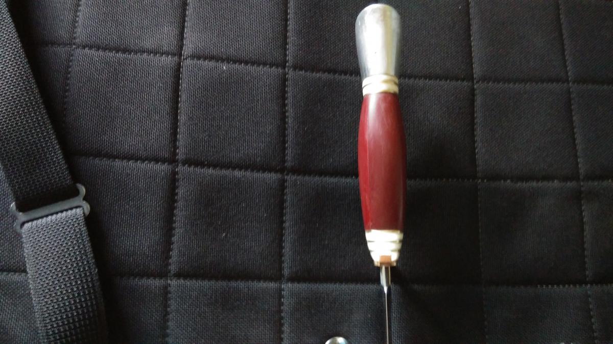 Вот ещё один созрел. Всё как обычно: клин - Х12(А.Бирюков),вогнутые спуски, травление в хж, рукоять - зебрано, фибра, нейзильбер, пропитывать ничем не стал, покрыл на горячую смесью карнаубского воска с очищенным льняным маслом. Хвостовик длинный, почти на всю рукоять. Длинна клинка - 122мм. Вроде простой, но мне понравился. Ножен нет.