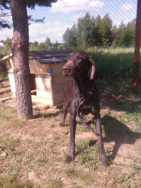 В Вологодской области, череповецком районе, Деревня Пленишник найдена коричнево-пегая в крапе сука курцхаара.