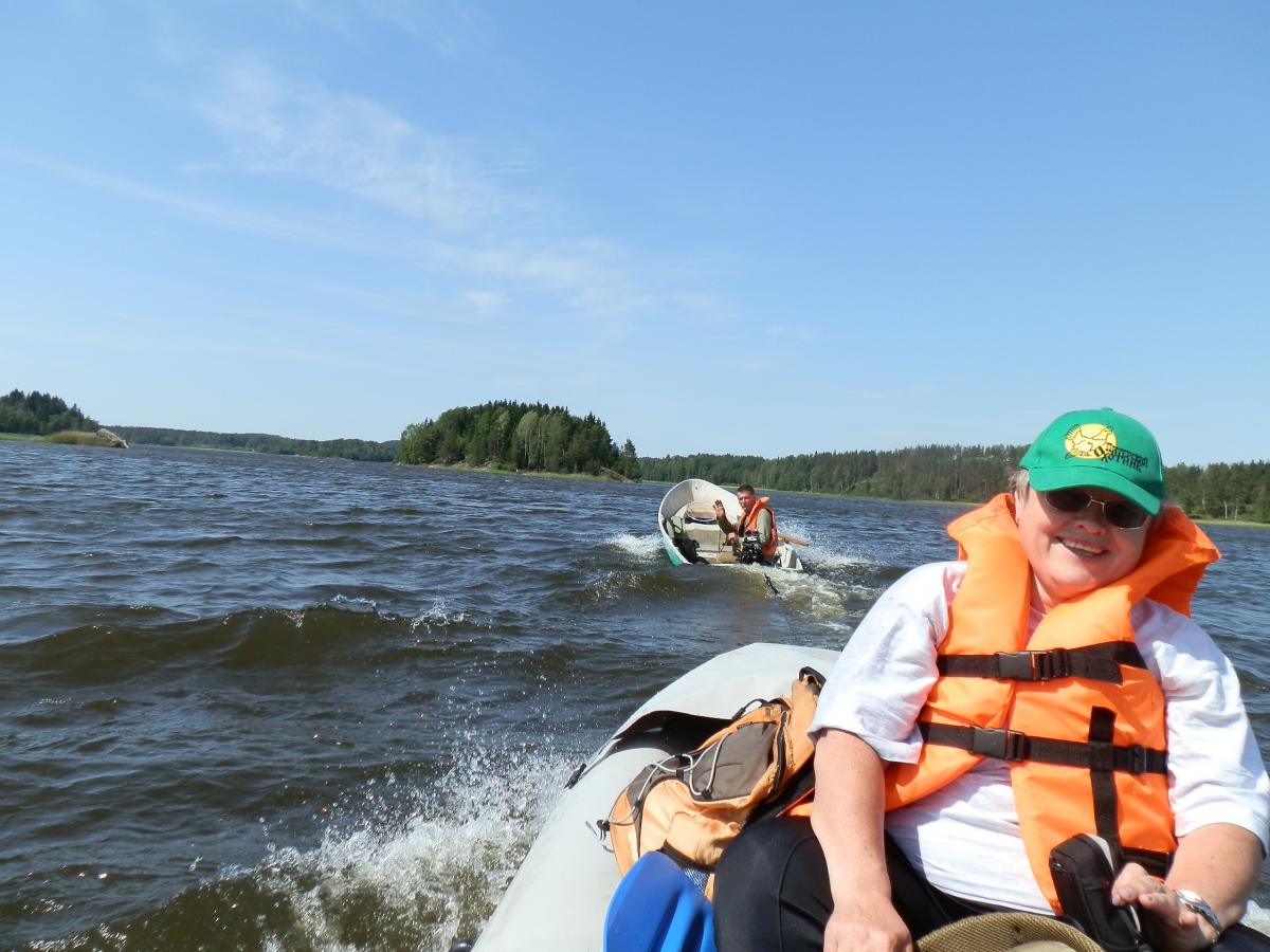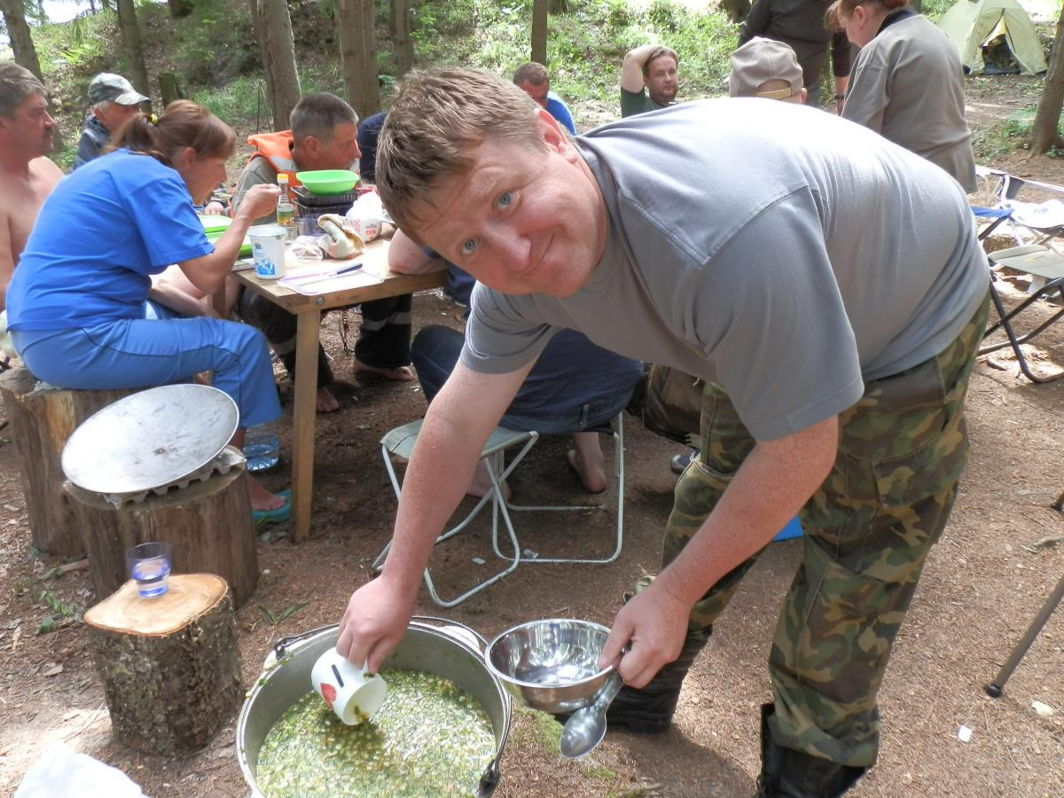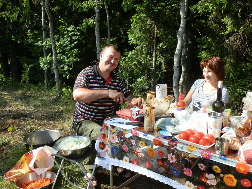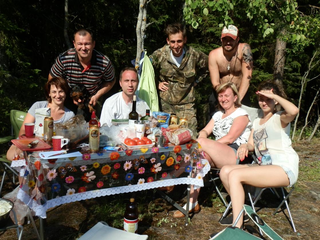 Погода не подвела, практически все время светило солнце, а дождь был только те полчаса, когда совместными усилиями вешали тент, да еще, когда нужно было уезжать Ладога вздумал нас попугать набегающими тучками из которых сыпал мелкий дождичек, как бы говоря, «вот я бываю и такая». НО нас этим не испугаешь, поэтому уверена, что многие в следующем году приедут на наш новый остров еще разок