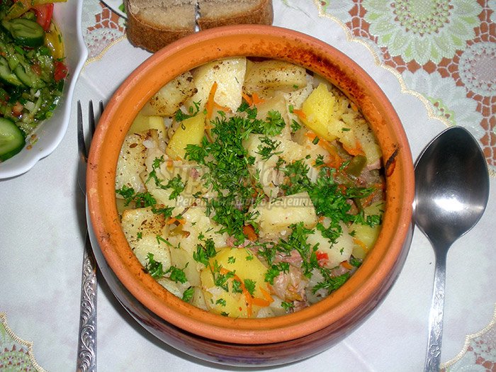 Все наверно хоть раз делали или пробовали запеченную картошку с мясом в горшочке в печи!