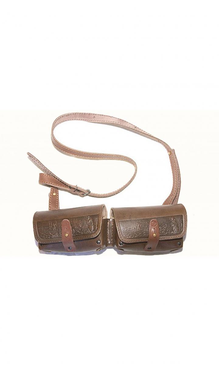 2. Патронташ закрытый на 24 патрона калибра 12/16 со съемными подвесом для дичи и плечевым ремнем. Украшен художественным тиснением: 4500 руб