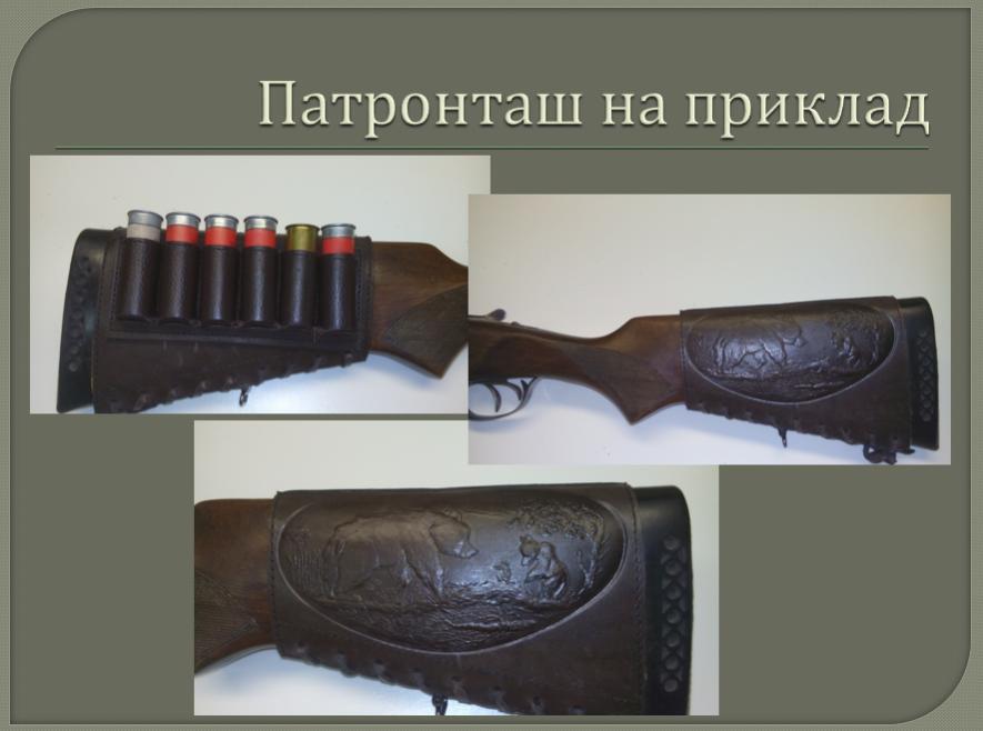 10.Патронташ на приклад с кожаной шнуровкой, на шесть патронов 12-16 кал., под любое ружье: 1150 руб.