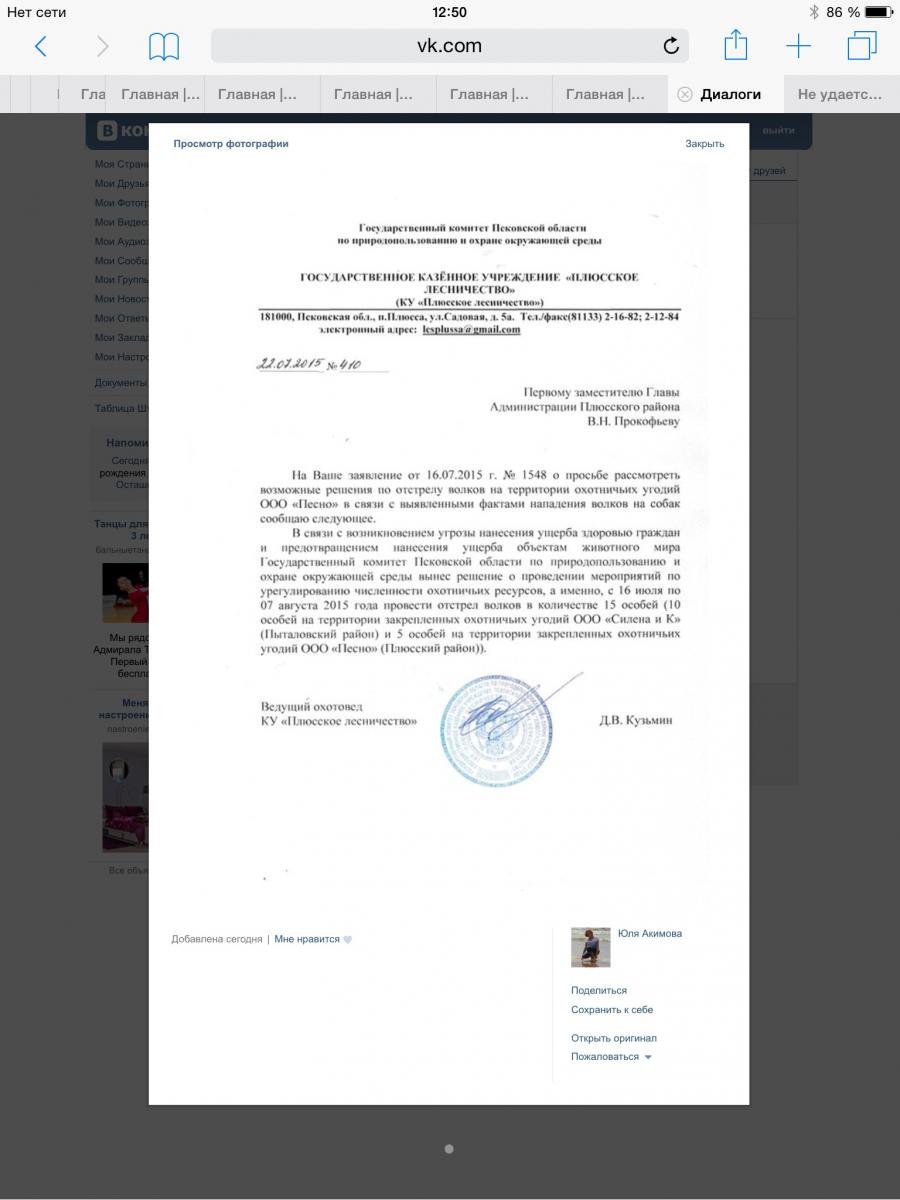 Толя, ты ж сам сидел с оружием ,ждал волка, непосредственно в посёлке...