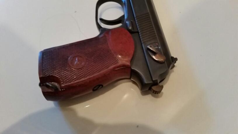 Новое горячее воронение в селитре (ровномерное и очень качественное, в жизни намного красивее чем на фото). Бородатый. Убраны насечки на рукоятке. Шлифовка. Расточен клапан и обтюратор. Приварен выбрасыватель. Потайной винт. Дульный срез 9мм. Текстолитовая рукоятка. Дутая затворная задержка от ПМ. Фигурная скоба. Фрезерованный спусковой крючок. Убраны надписи. Установлены все новые прокладочки. Балон и клапан нигде не травит, 2 месяца лежал заряжен, воздух никуда не ушел. Вобщем надежный и красивый пистолет, за разумные деньги! Также бонусом отдам 4 балона, пульки штук 200, не потайной винт, рукоятку ПММ. Цена: 6500 р.