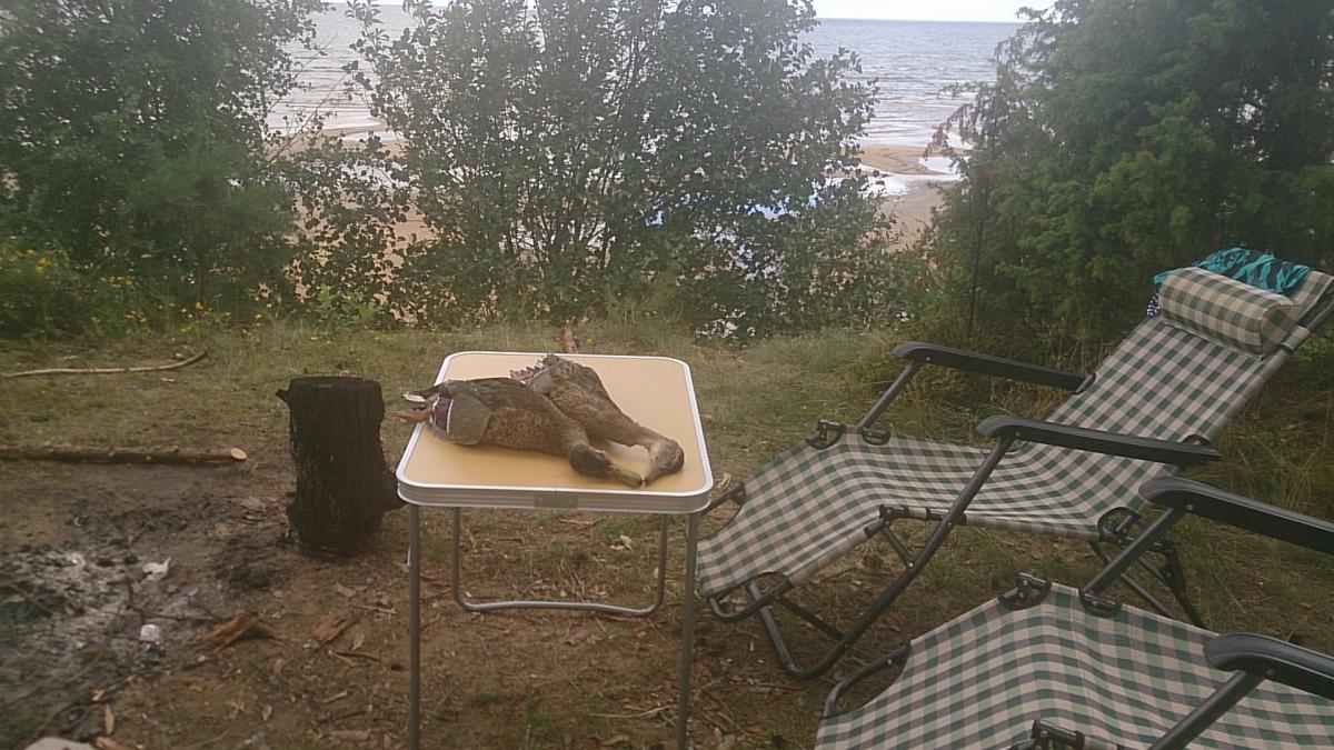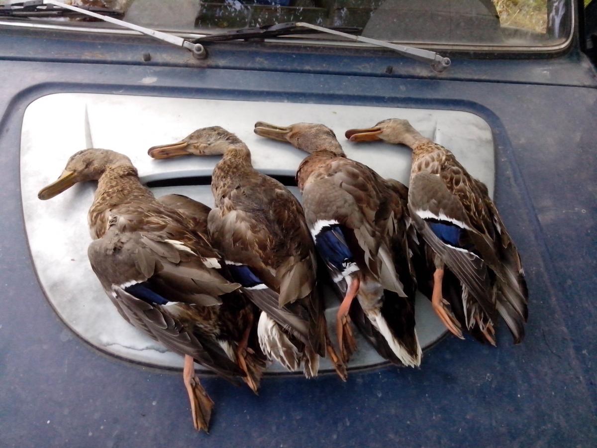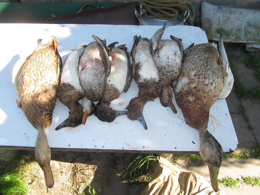 Мазал много и безбожно. Взял 7 штук ( 2 кряквы,2 чирка-трескунка, 2 красноголовых нырка и 1 морская чернеть) истратив 40 патронов. Не нашёл только одну. Заполевал старого жирного селезня-крякаша весом 1.48.