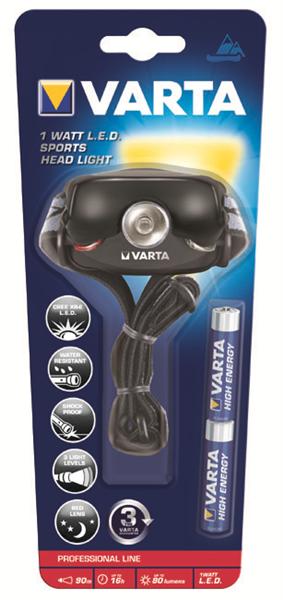 Фонарь VARTA 1W LED SPORT 2AAA крепление на голову 700 р. 3шт
