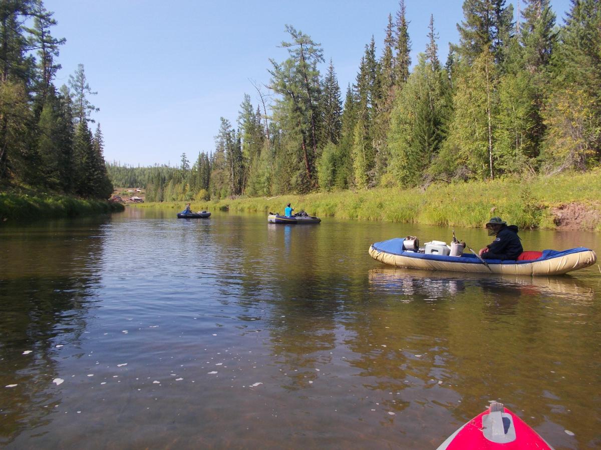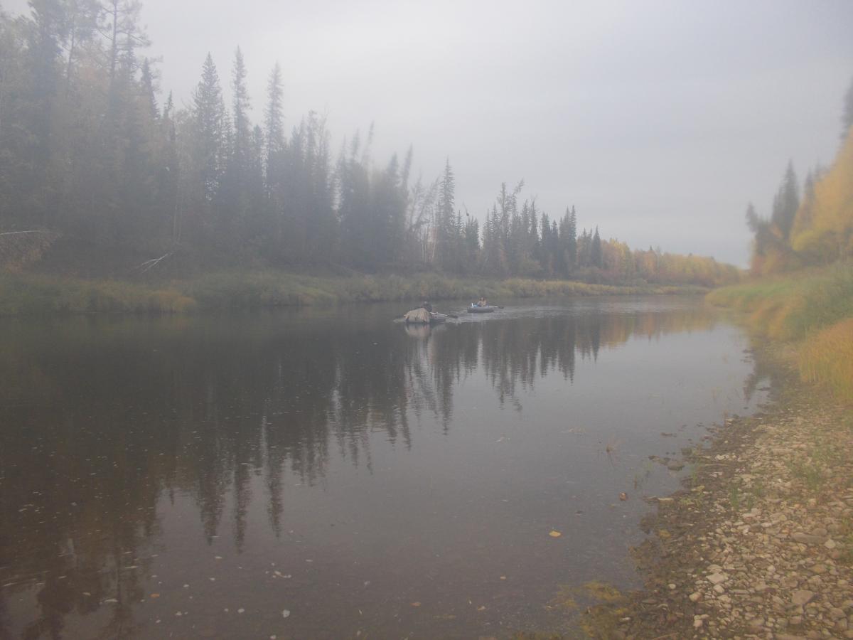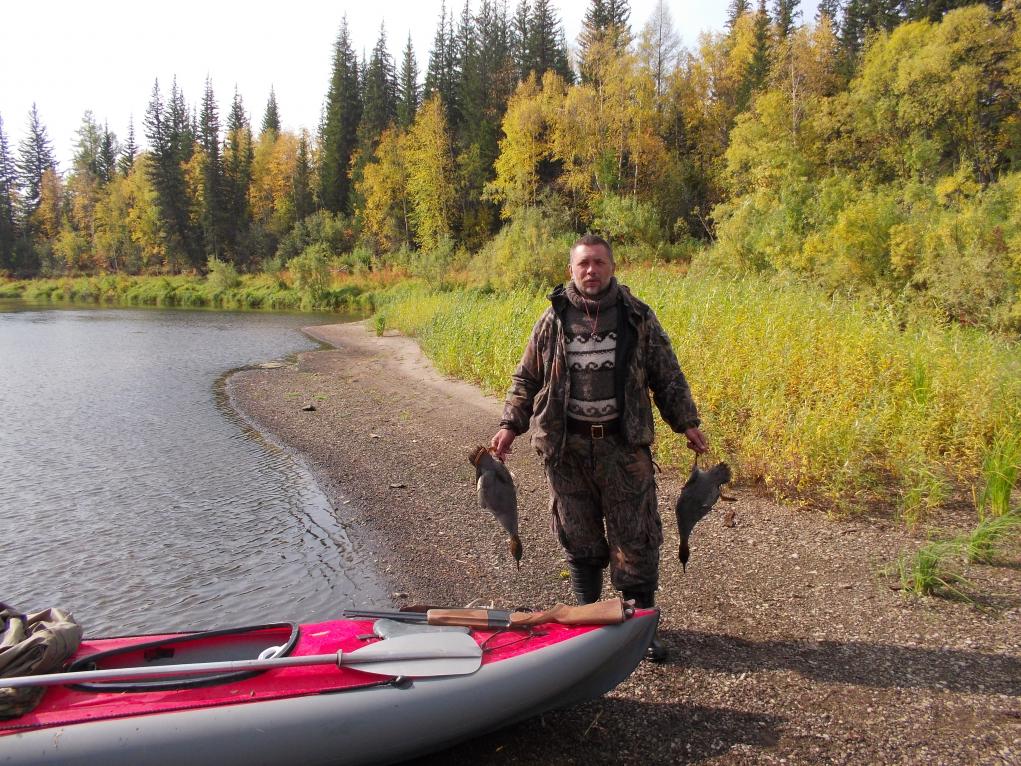 Река обмелела и стояли тёплые дни. Белой рыбы было мало,не спустилась ещё с холодных притоков. Вдоволь было щуки и окуня. В достатке было дичи ,боровой птицы и уток. Людей на реке практически не было,из-за малой воды. Поэтому зверь осмелел ,совсем не пуганый. Особенно много было медведя .Где то там подтопили, да и пожаров было много. Паслись они на черёмухе. Фото нет, когда над головой в 15-20 метрах топтыжка. Руки тянутся не как ,не к фотоаппарату.Сам визуально видел двух изюбрей . изюбрюху и медведя. Листва ещё не опала. Слышал много всяких.Людей встретили два раза. Высадки было две: поход на лесное озеро. И на клюквенные болота .На озере, просто провели разведку. Рыбачить не было смысла, щуки и в реке как ни когда в избытке. На болотах взяли 130 литров клюквы.