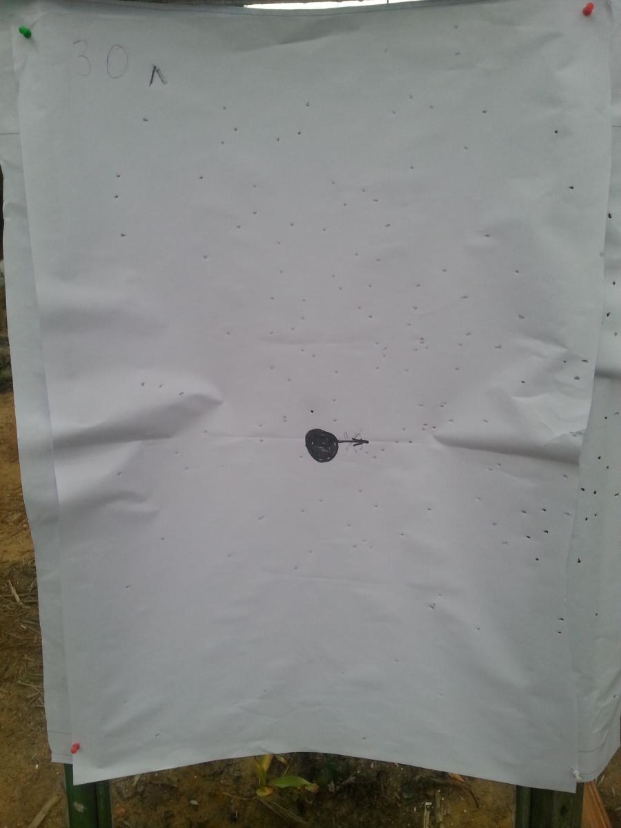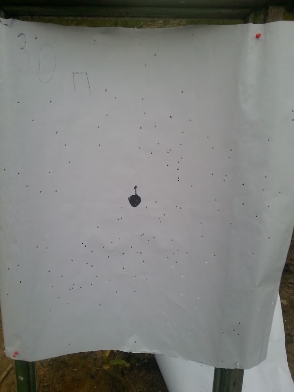 В комплекте три сменных сужения: IC (четверть чока), M (получок), F (чок). В правый ствол ввинтил получок, в левый чок и отправился на пострелушки. Результат стрельбы дробью 3 и 5 главпатрон прикладываю. Вообщем, как и планировалось - на 30 норм, а на 50 лотерея. Результат этой вечёрки подтвердил следующим утром на стенде - в пределах 30 метрах дичь не уйдёт