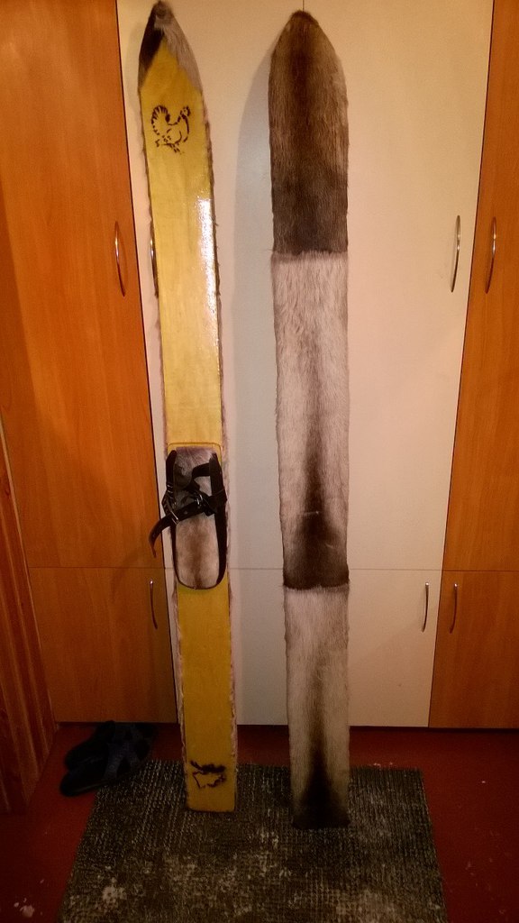 Лыжи осиновые, сделаны из комля дерева т.е загиб носка не термический в оправке, а природный. Ширина 14 см к данной ширине пришли опытным путем и тысячами км по тайге, крепление так же собственной конструкции из ремешков но с полной фиксацией.
