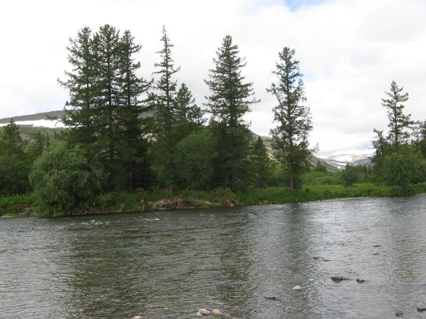 Следующий день. Еще 6-8 км пути. Один-два брода. Остановились в великолепном месте. В горах я больше всего люблю редколесье. Выше леса уже нет, а тут редкие лиственницы на ровной как стол долине меж склонов гор. Полудневка. День удался. Не помню, кажется была еще дневка.