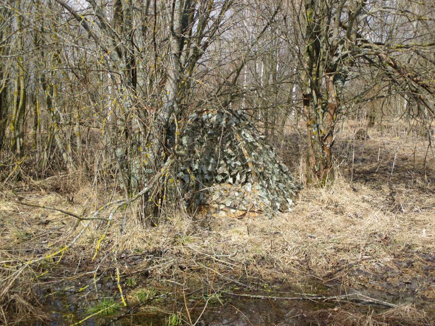 Вот! Этим мы и займёмся, в числе прочего, в марте-апреле. Ну ещё пенёчков подтащу, чтобы сидеть на них. Старые сети (и именно нитяные) у меня есть, навяжу, наверное, лоскутов из старых мешков, а ближе к сезону - ещё пучки травы подвяжу.заранее можно будет сделать каркасы под скрадки и на берегу