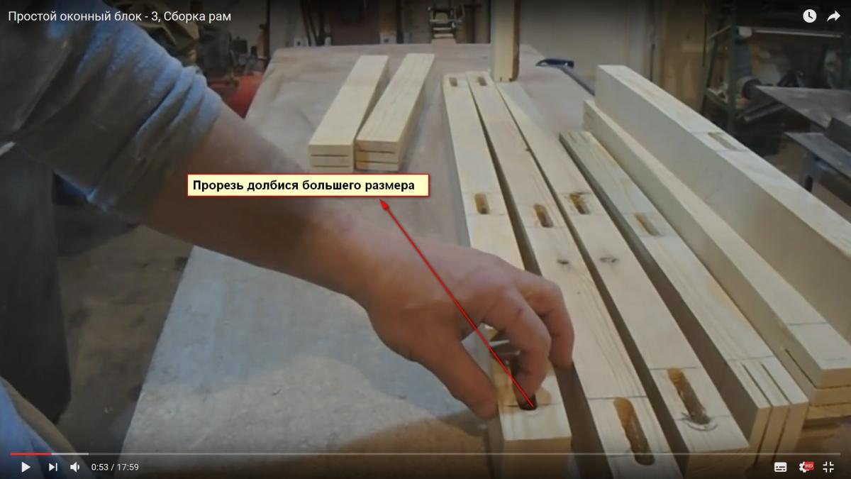 Есть такая "технология" - эту рейку-прокладку хорошо бы прикрепить к стёклам аккуратным слоем силиконового герметика. И, кстати, такие рейки получаются как раз если резать четверть под стекло на циркулярке, а не фрезой, как я сейчас. Но циркулярка нужна точная, столярная, а не плотничья, как у меня сейчас. А так я пока вместо полезной рейки произвожу стружку.