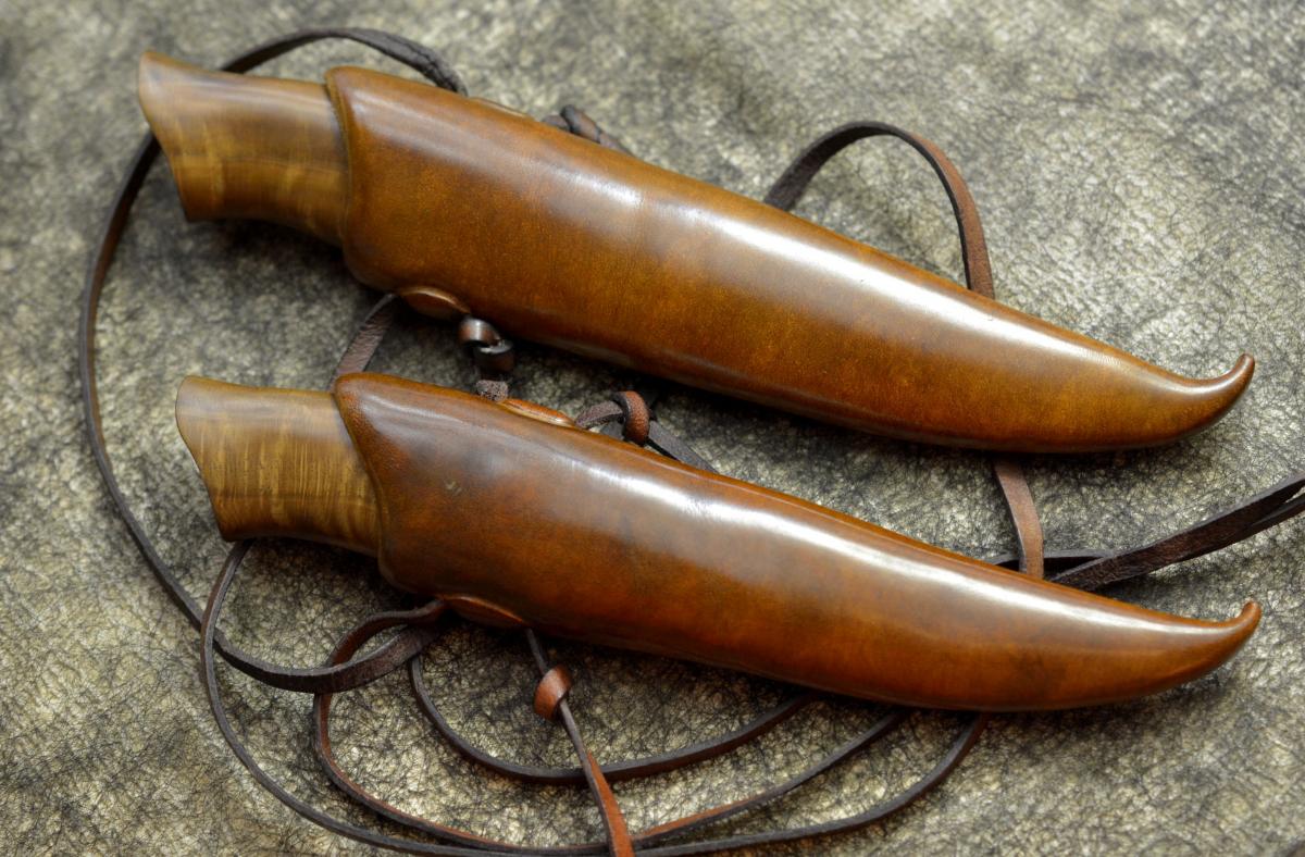 Ножны кожа р.д. кожаный шнурок, краски сапфир, воск на горячую.