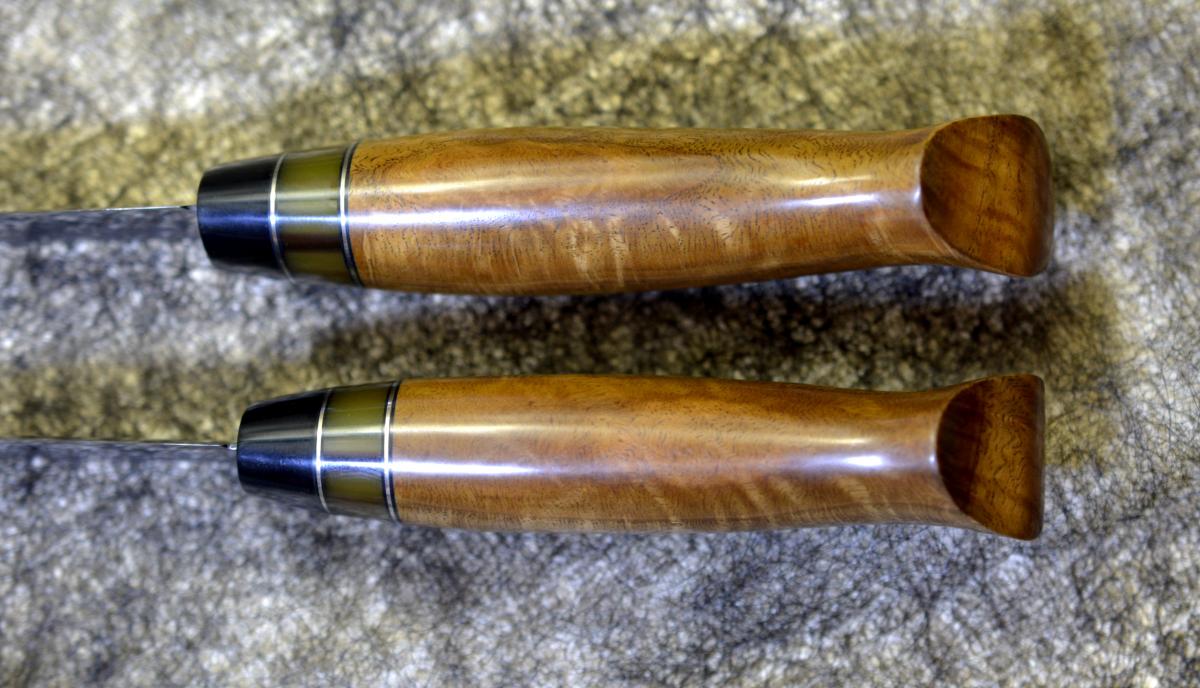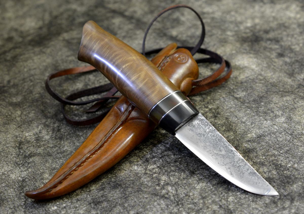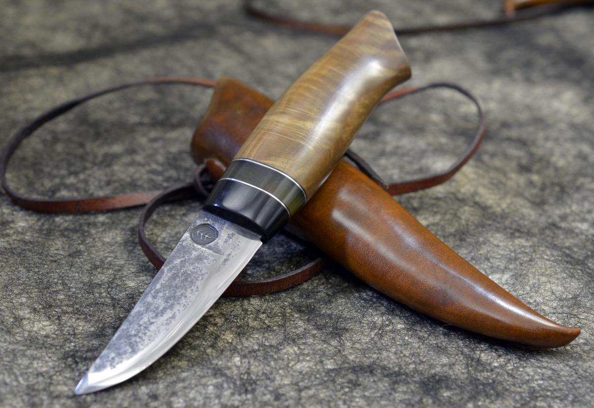 Клинок 74х23х3мм, у13А, спуски сведены ковкой, твердость около 59-60 ед. Рукоять 103х29х20мм. сувель дуба, искусственный рог, мельхиор, фибра. Горячая пропитка тиковым маслом, даниш.