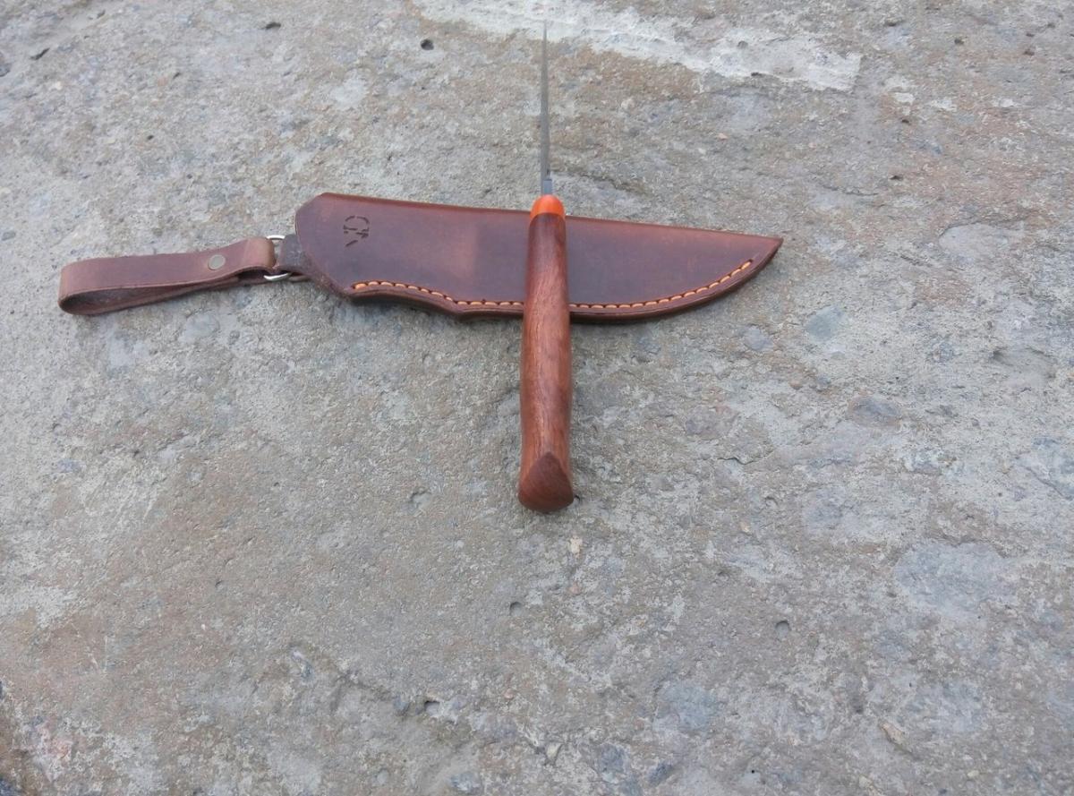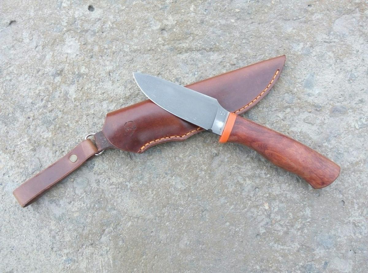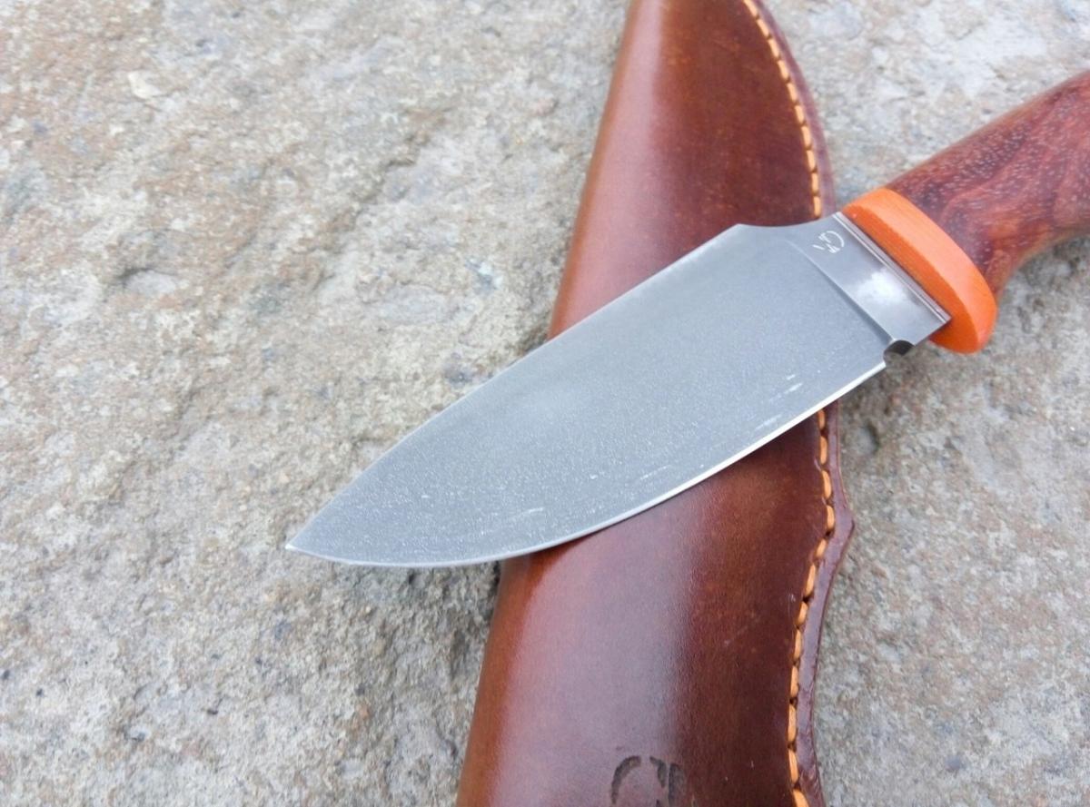 Всадной монтаж на эпоксидку, Больстер оранжевый G10, пропитка Danish Oil, Полировка рукояти до 1200 наждачки