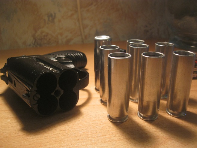 Патроны к пистолету: 1 свето-шумовой и 7 травматических в подарок.