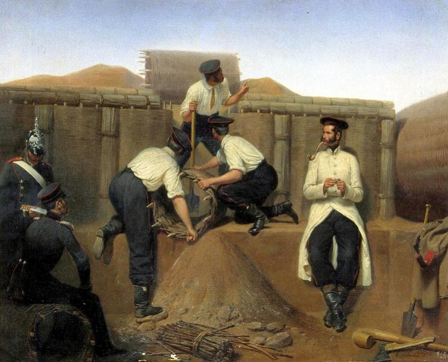 странно, а отсутствие на картине лопаты, по Вашему свидетельствует о том, что она не применялась в войсках вплоть до Советской власти :)