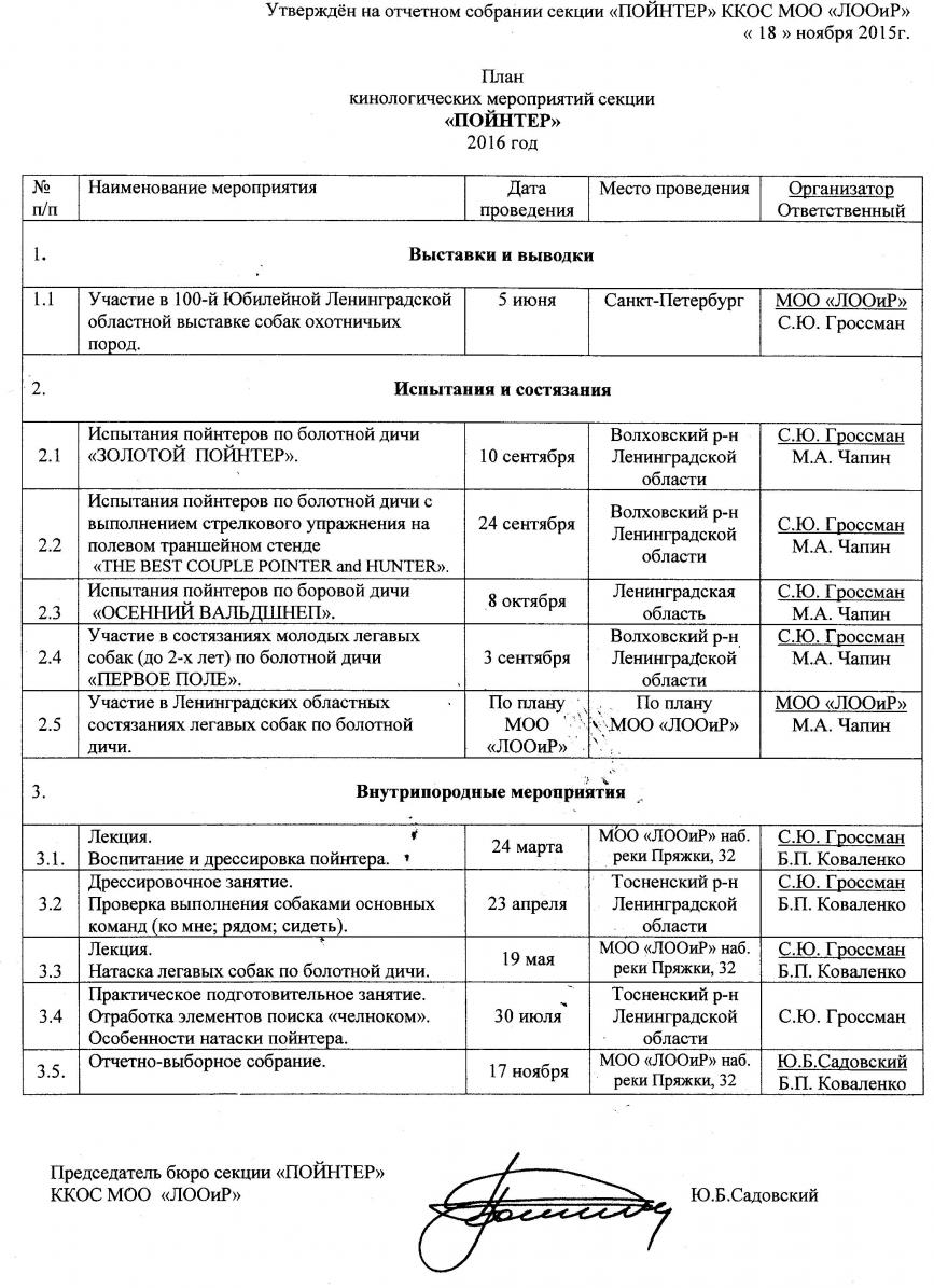 18-го ноября 2015 года, секция "ПОЙНТЕР" Клуба кровного охотничьего собаководства МОО "ЛООиР", провела отчетно-выборное собрание. Были подведены итоги деятельности нашей секции в 2015 году, дана оценка работы бюро и избран его новый состав, утвержден План кинологических мероприятий на 2016 год, а так же проведена торжественная церемония вручения ПРИЗОВ, присужденных за лучшие результаты на традиционных испытаниях пойнтеров по болотной дичи "ЗОЛОТОЙ ПОЙНТЕР" и "THE BEST COUPLE POINTER and HUNTER"