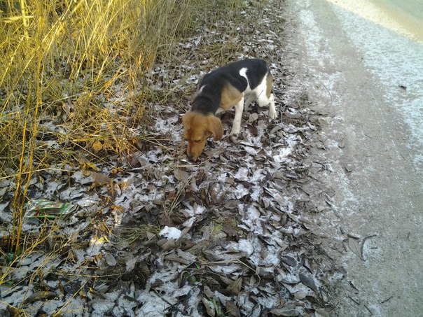 В садоводстве Оснички Киришского района (рядом Глажево, Андреево), прямо по дороге бегает собачка, без ошейника, видимо голодная (на еду накинулась) и замерзшая. Людей побаивается, но к еде подползла на полусогнутых ножках. Кто потерял ребенка? +7 911 25 20158 Наталия