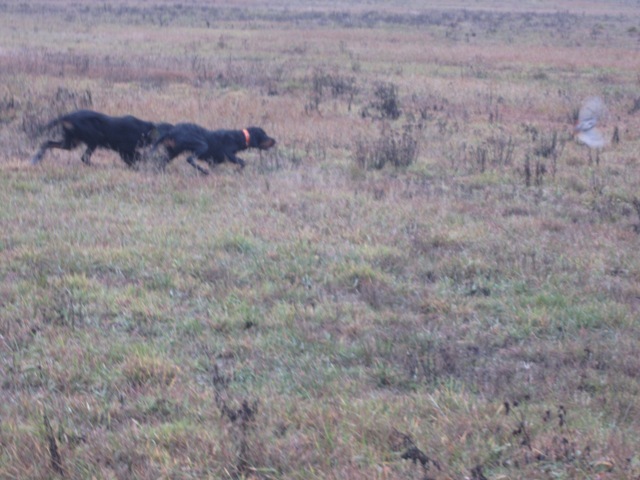 Следует парная работа, видно даже взлетающую из выводка куропатку