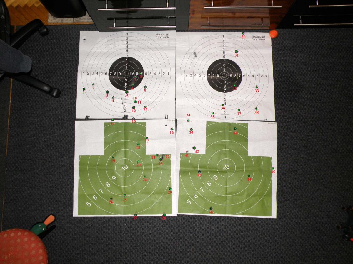 11) забыл подписать мишени. Вроде нет, но мог взять и чужие... Мог перепутать в каком порядке висели. Это важно, потому что сначала целил в центр поля, образованного всеми 4 мишенями. Все уходило в основном вправо и вниз.