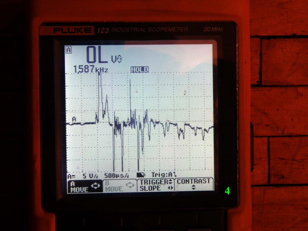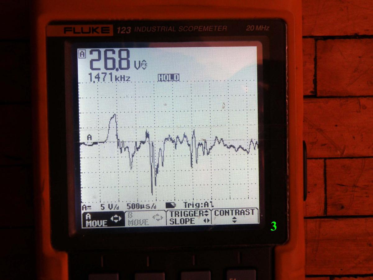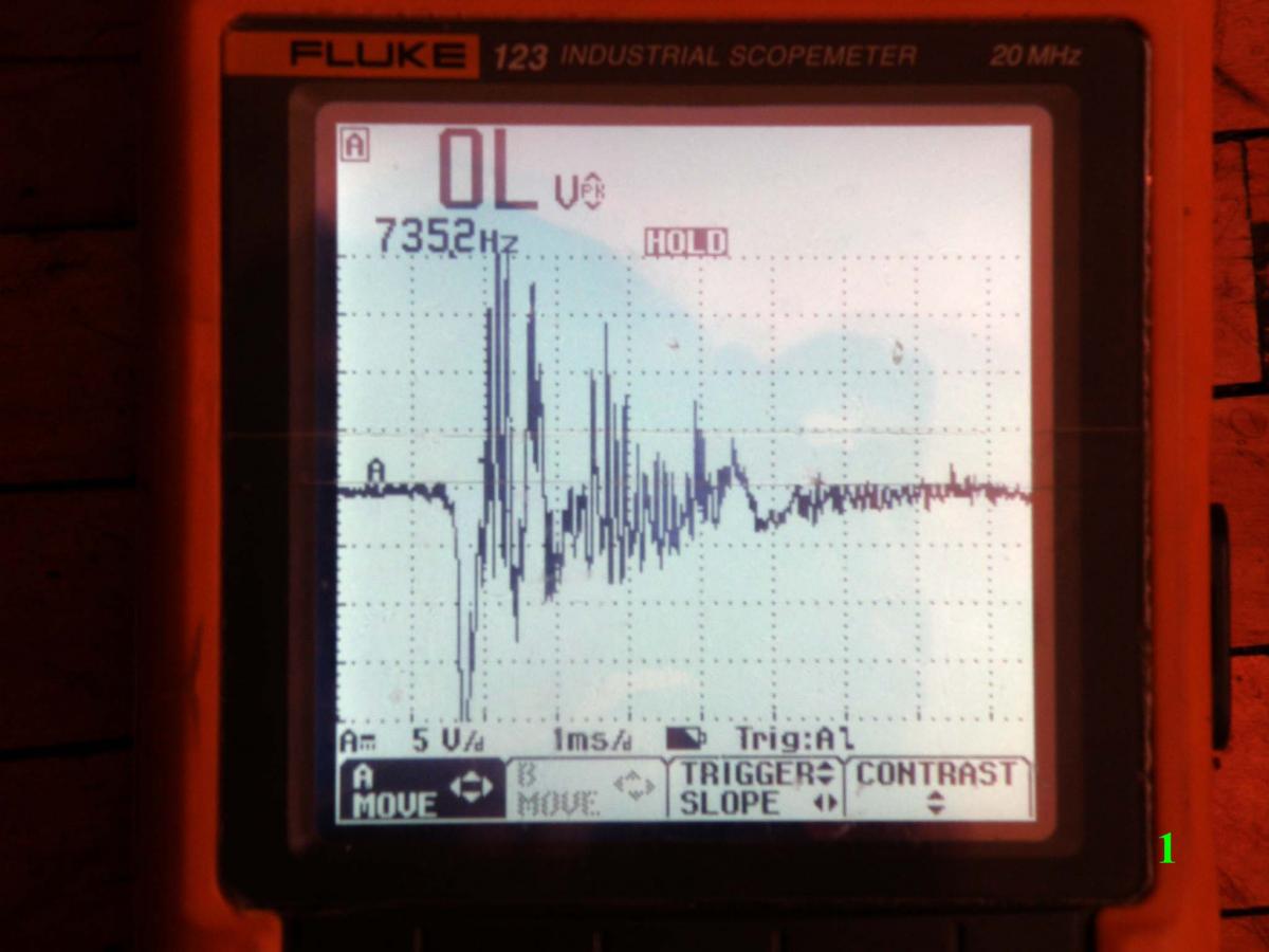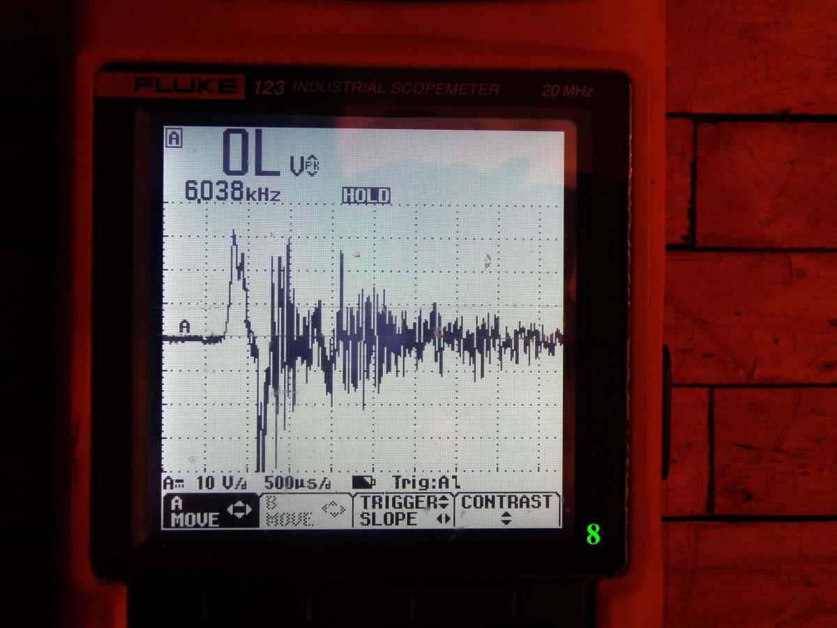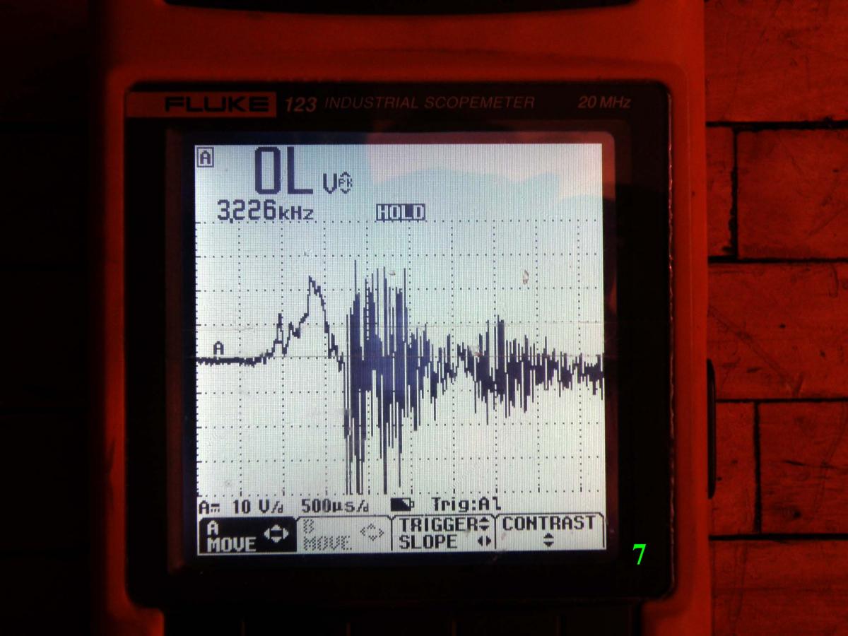 Патрон Техкрим-С. Шар 27.5 грамм. Прямая полярность, масштаб по времени изменил 0,5мс/ клетка. Гайку не подтягивал.