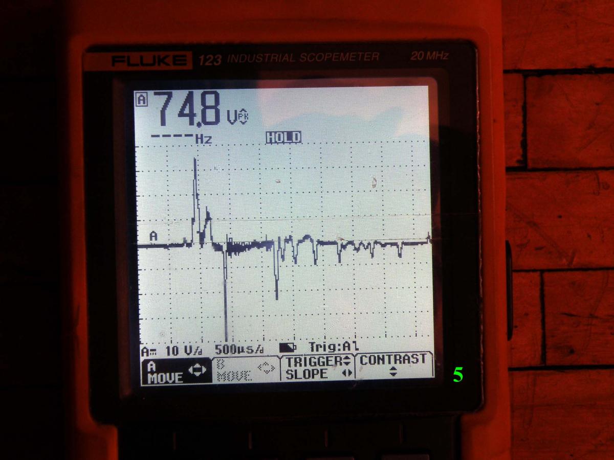 Зенитоид на базе дробового ГП №7.5, без закрытия. Еще более слабый толчок. По длительности примерно так же, по амплитуде на 5В меньше.