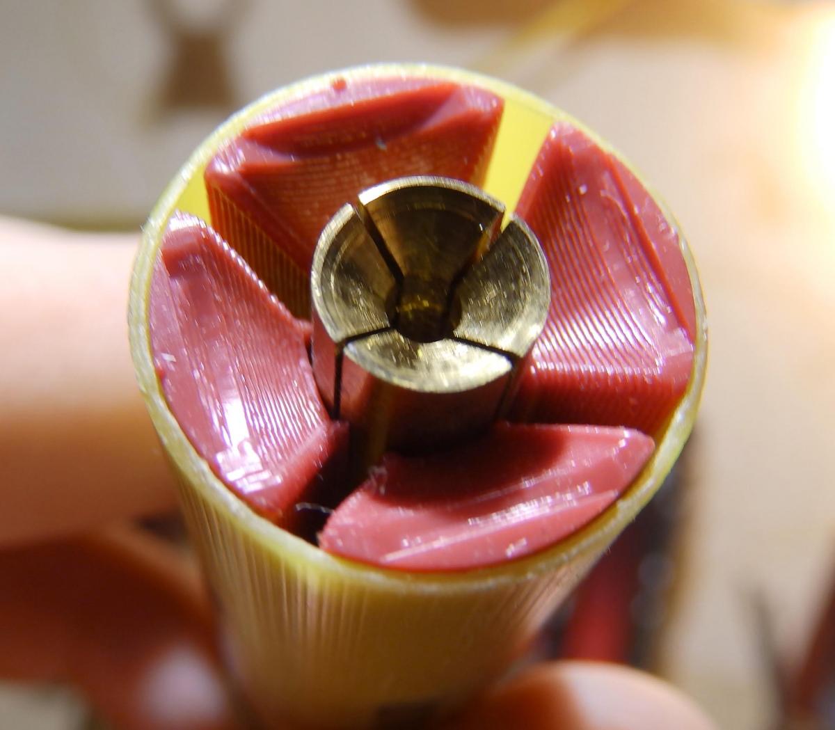 И прямо из этой кассеты можно досылать в гильзу на пыж, желательно вверх ногами, чтобы не ловить потом толкатель внутри.