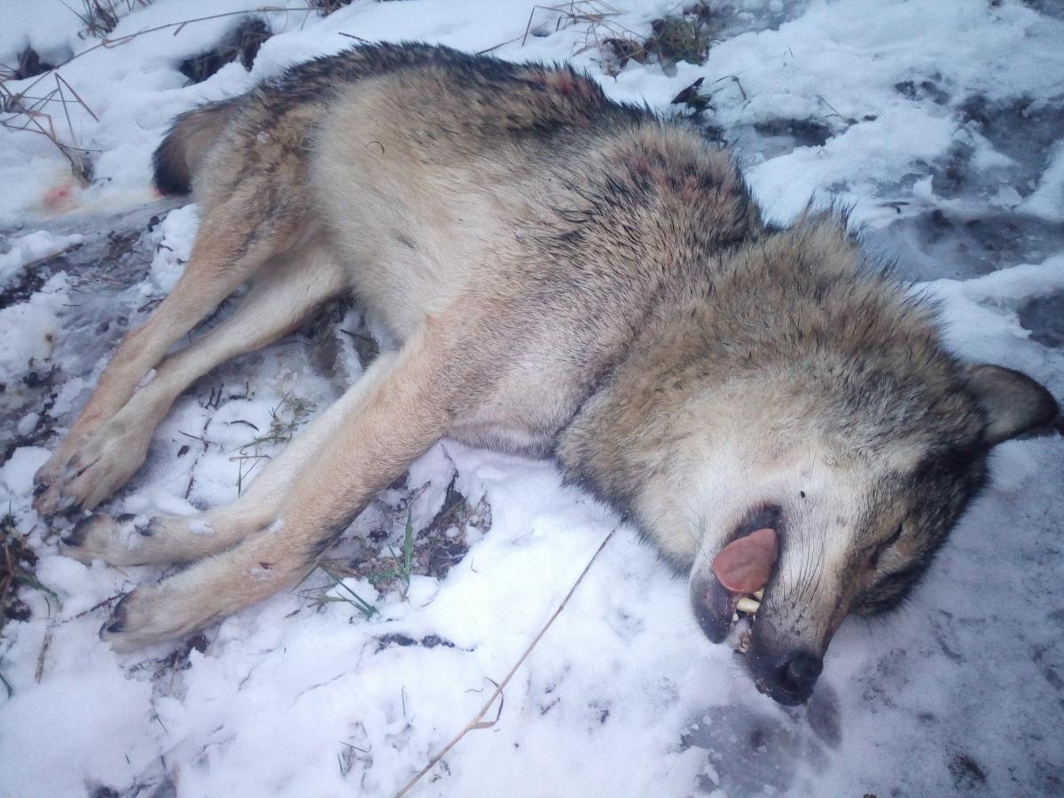 Сделали несколько загонов, но ни волков, ни следов их пребывания не обнаружили, за то под темноту, благодаря опытным охотникам и фанатам своего дела Светлане и Леониду Борисовичу, а также прекрасному курцхаару удалось найти моего подранка. Ушел не очень далеко, можно было дотропить. Подранок уже твердый и пах конкретно, значит вчера еще дошел, попадние двумя картечинами 8,5 над самым позвоночником впритирку, буквально сантиметра не хватило до взятия на месте, чуть завысил выстрел. Итого он метров на 500 утянул.