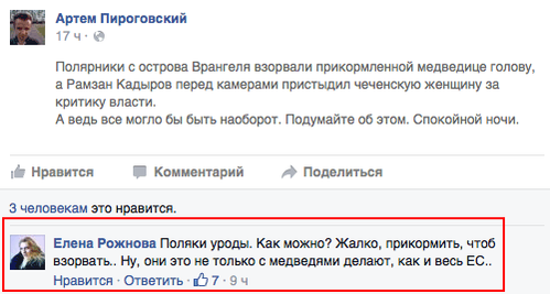 Мне наплевать на премию и зеленых вместе с ними, медведя можно убить, когда он угрожает человеку,