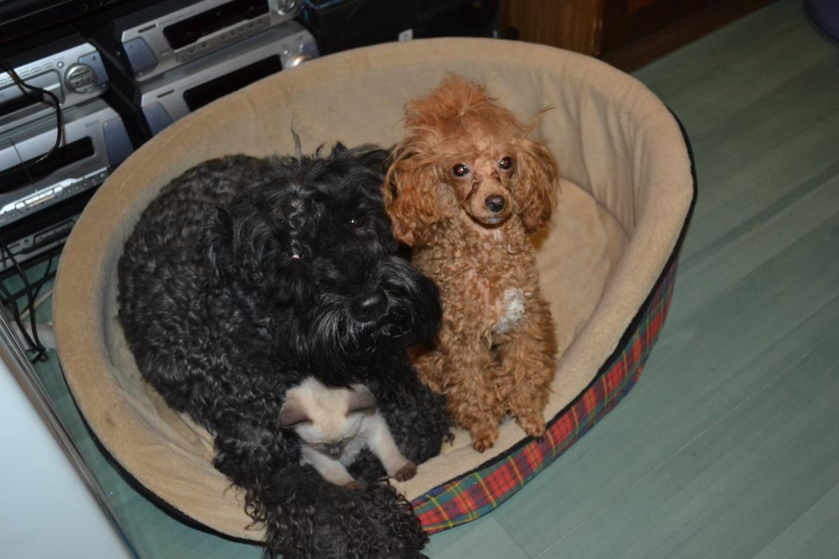 Еле успел поводок одернуть, только ухо зацепил, кровищи было.... Заклеили клеем Бф. Прямо как Тайсон с Холифилдом. Мало того, что на незнакомых наезжает, теперь еще и на друзей наезжает.