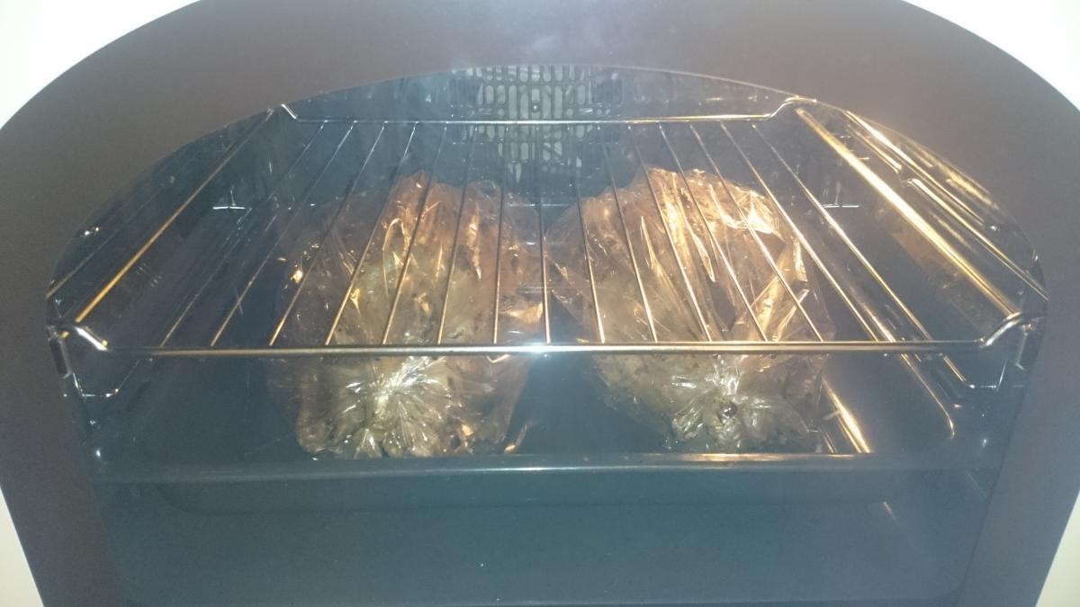 Теперь кладём гуся в рукав и отправляем в прогретую до 180/200 градусов в духовку часа на 3.