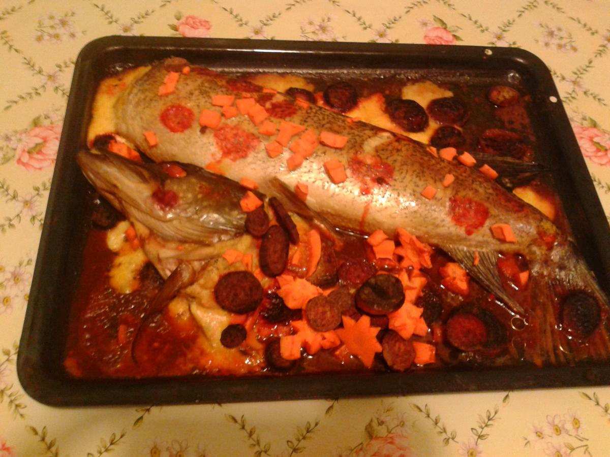 1 щука примерно около 2кг ( я сама брала из морозилки, еще с летнего улова дожидалась своего часа